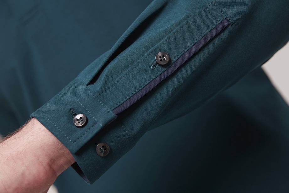 时尚弧边钝角袖头,拼色袖头里设计,横排单扣,细节处突出设计感。