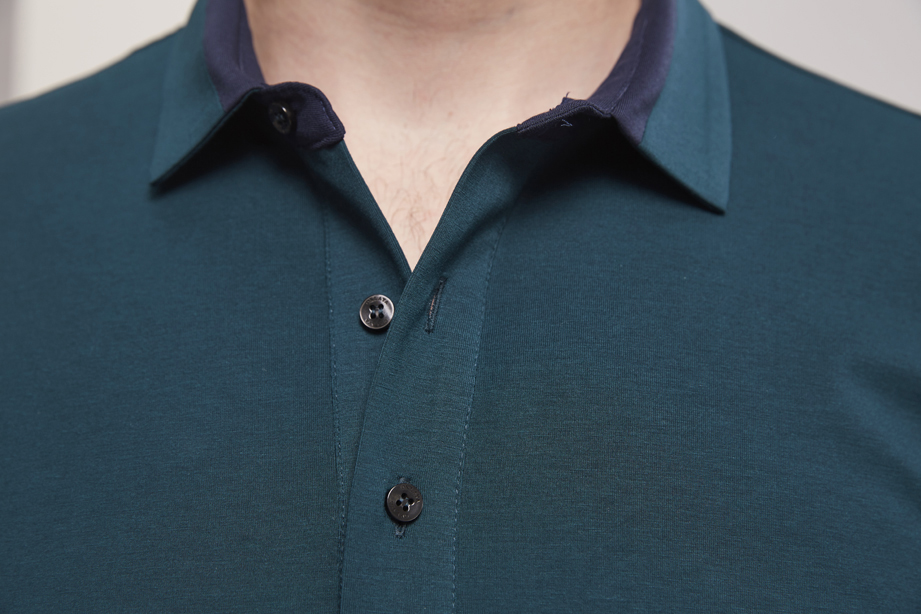 | 款名: | 深湖绿色莫代尔棉拼色领春秋长袖POLO | |||