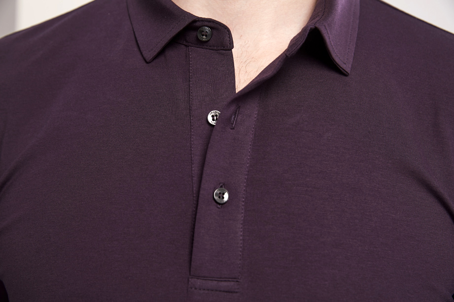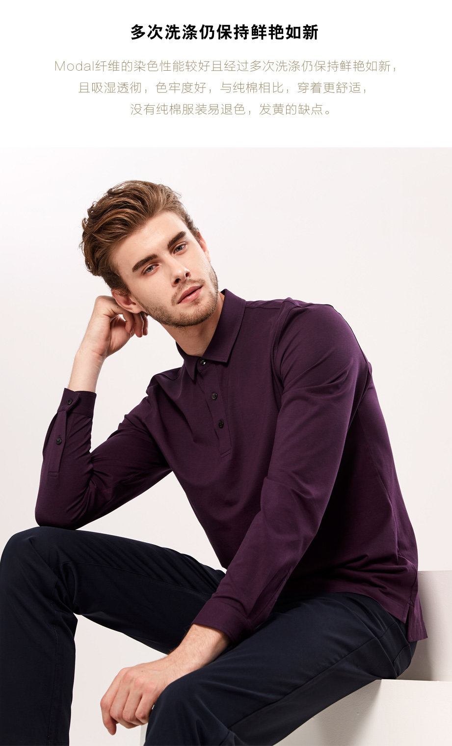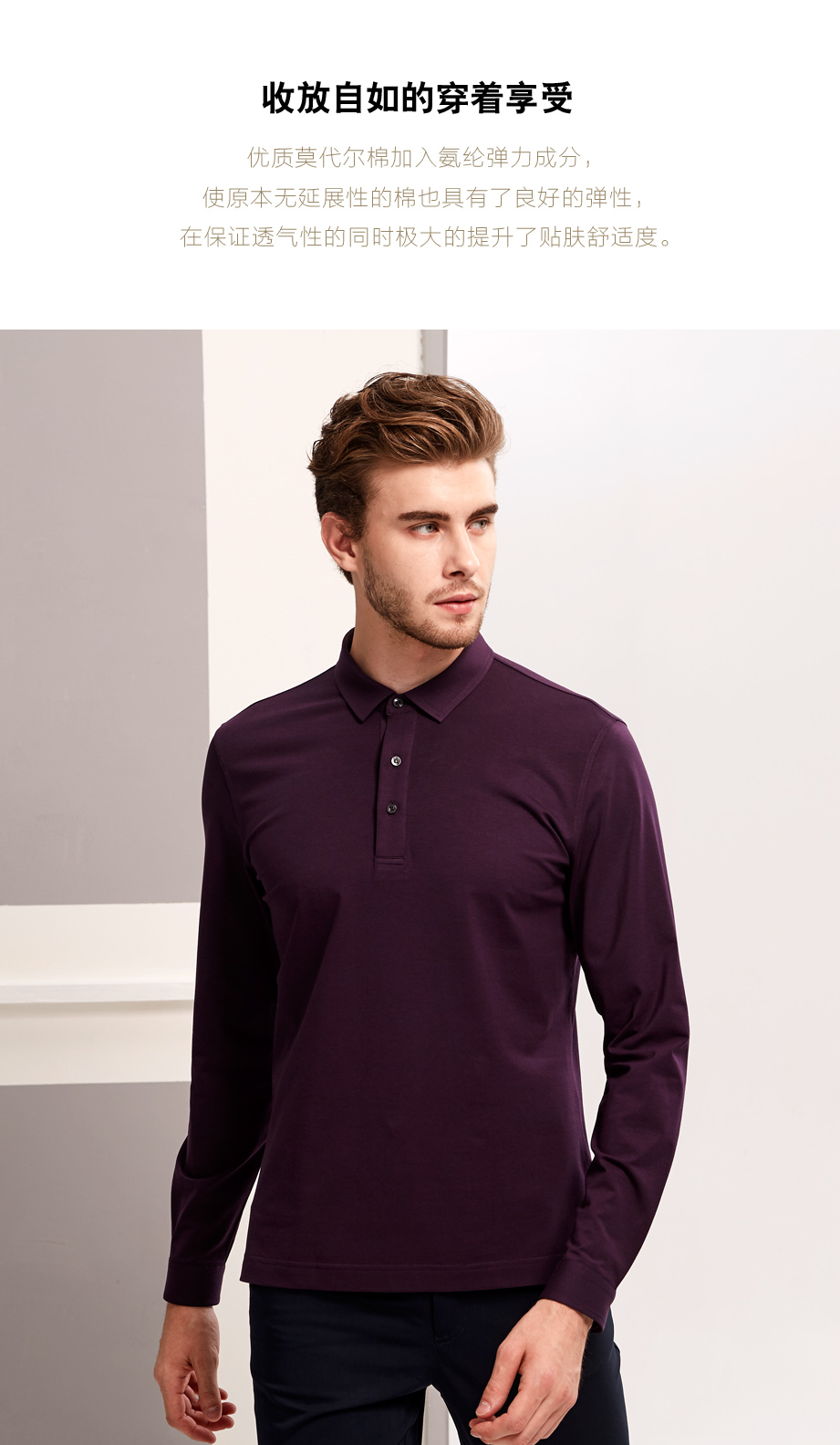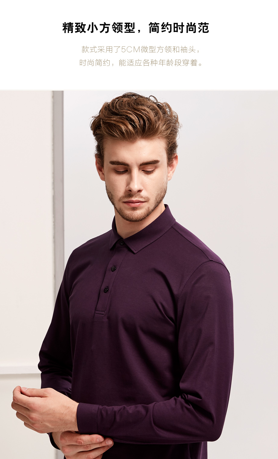| 款名: | 深紫红色莫代尔棉小方领春秋长袖POLO | |||||
