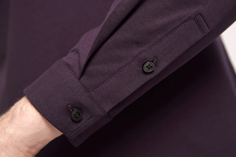 两侧下摆开衩设计,前端后长的衣身设计更符合男性身体曲线。