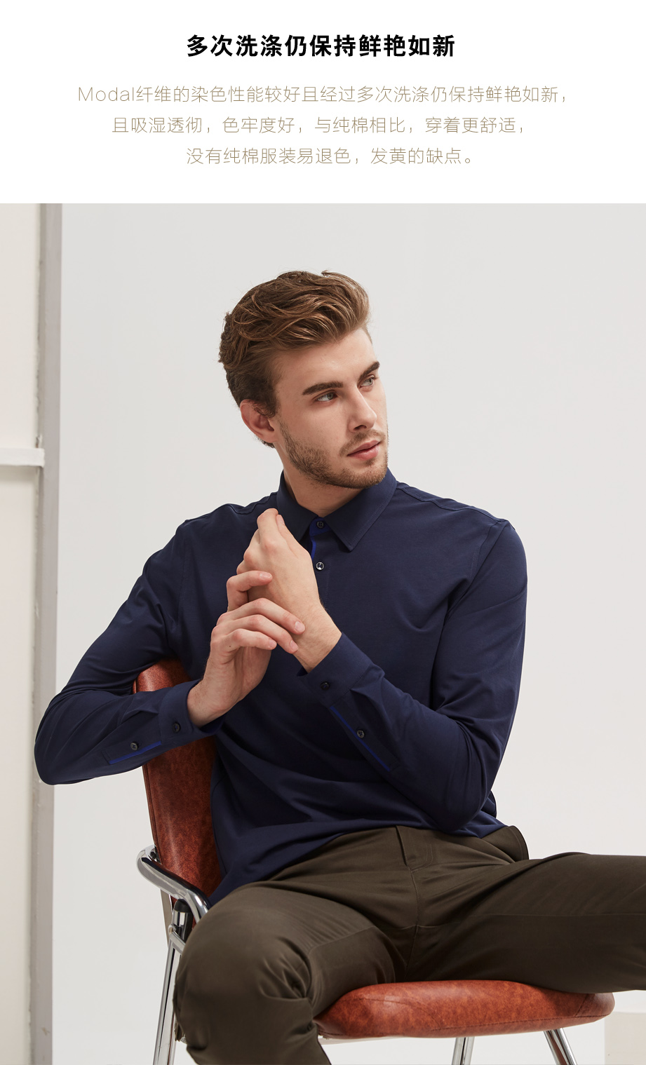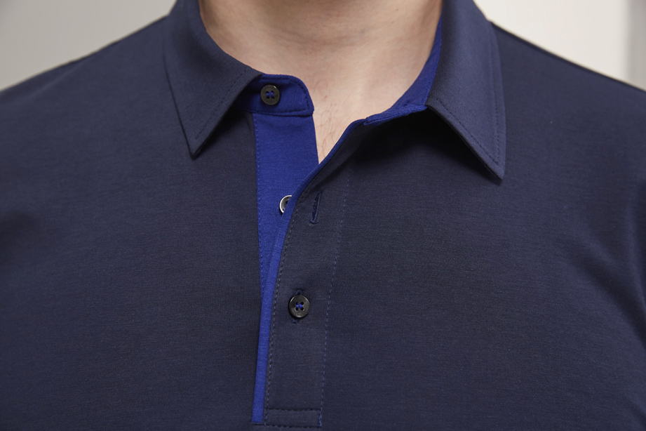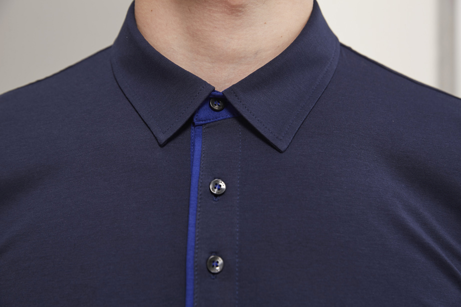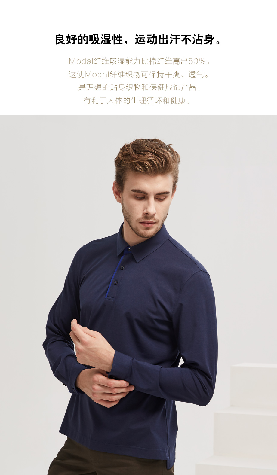 | 款名: | 深蓝色莫代尔棉拼色领春秋长袖POLO | |||