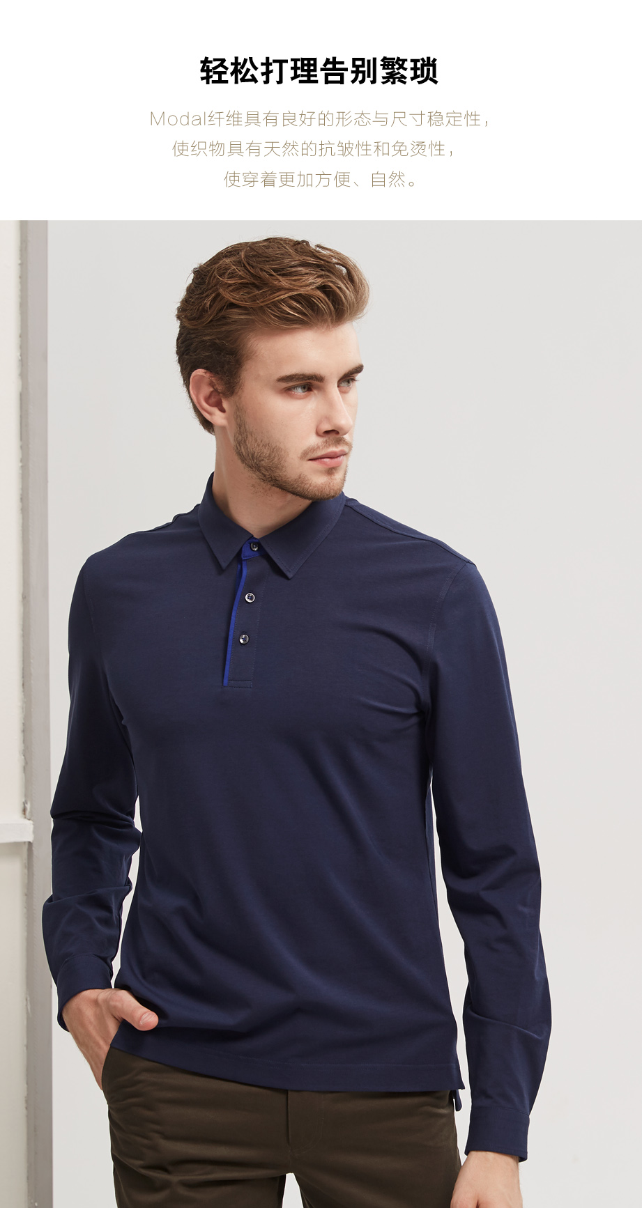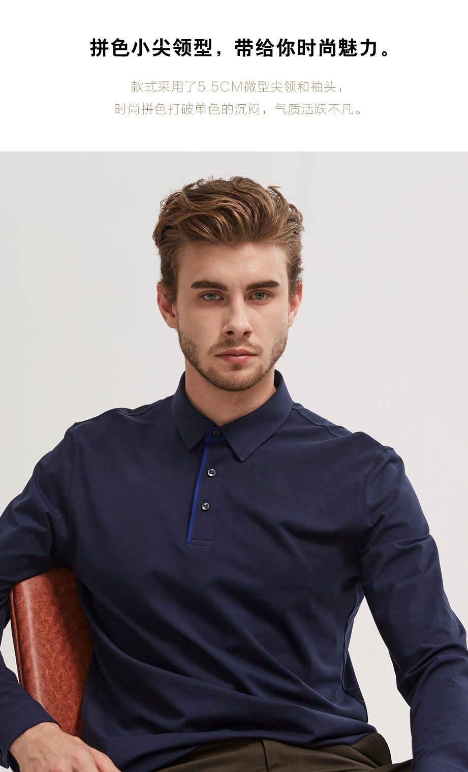 | 款名: | 深蓝色莫代尔棉拼色领春秋长袖POLO | |||||