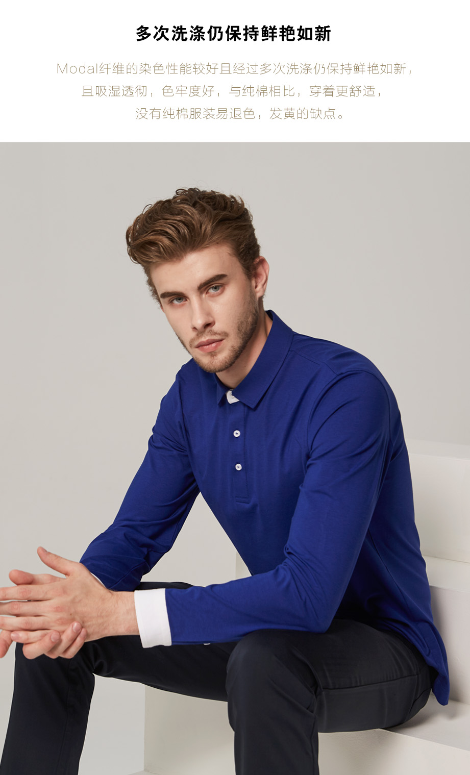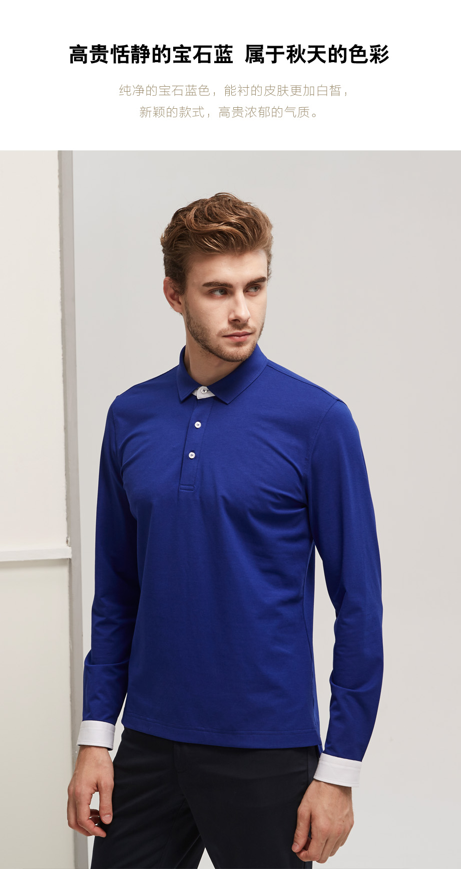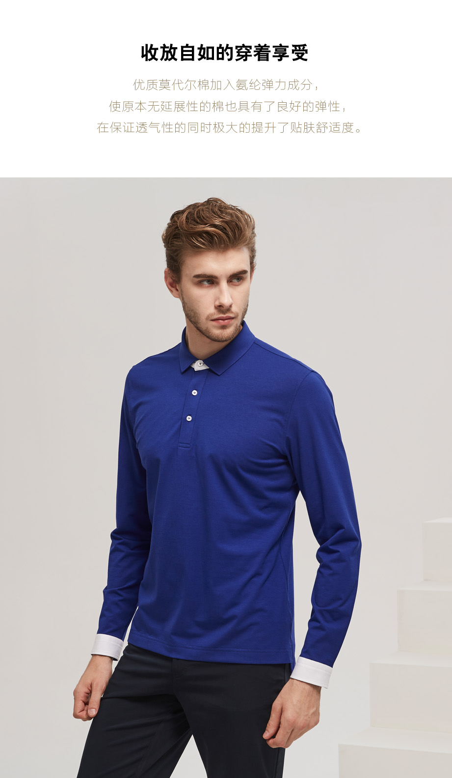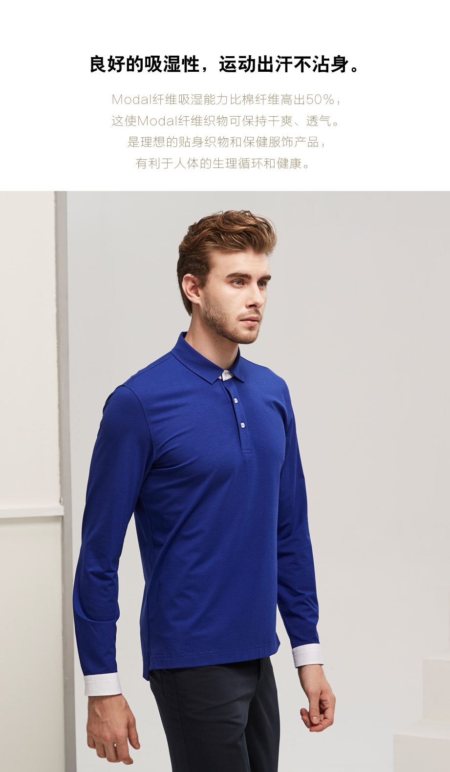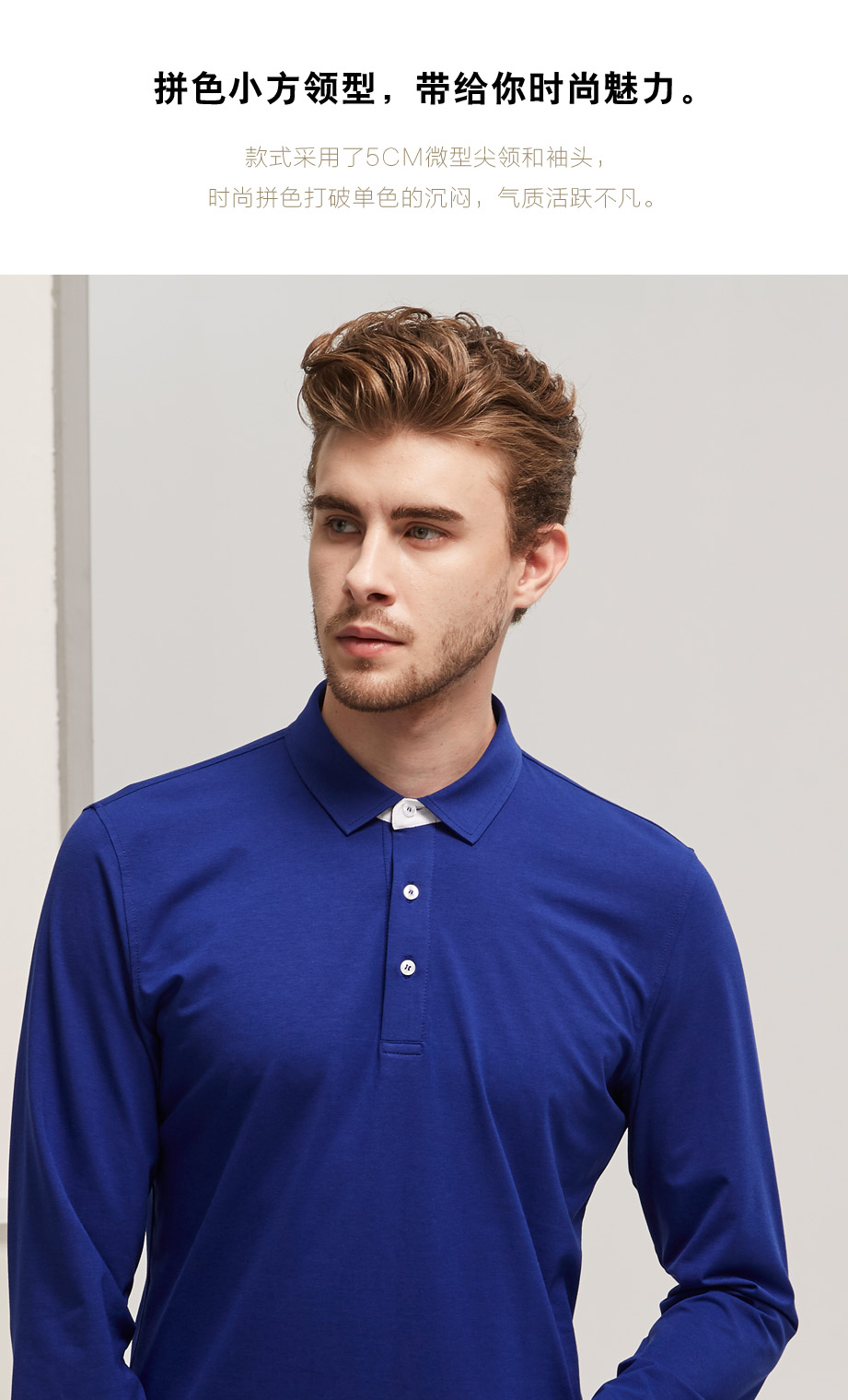 | 款名: | 宝蓝色莫代尔棉拼色春秋长袖POLO | |||||