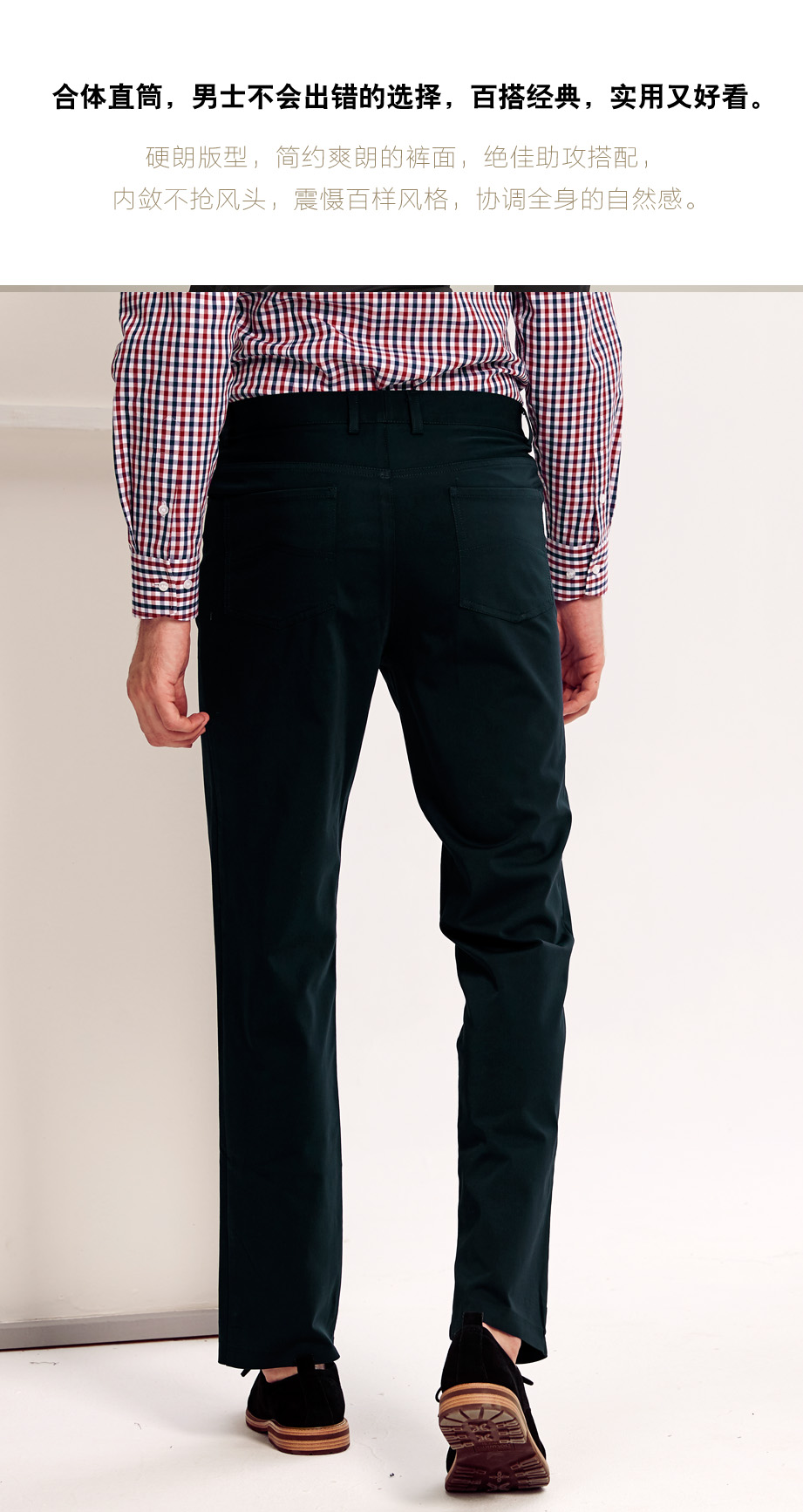 舒适利落的直筒裤口设计,包边处理平整,做工无可挑剔。