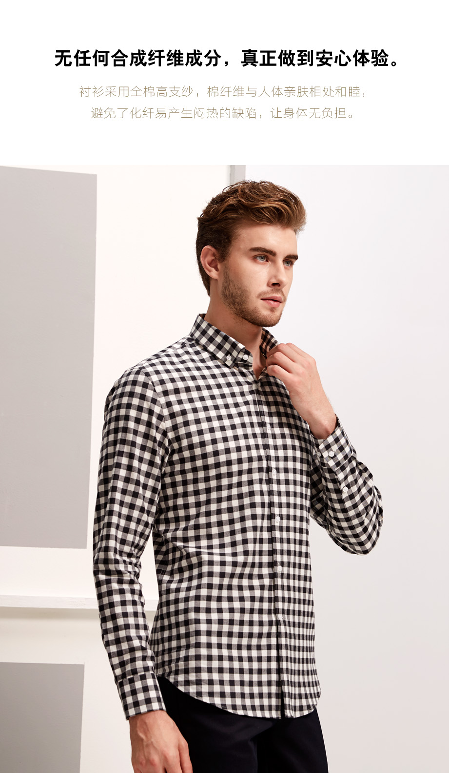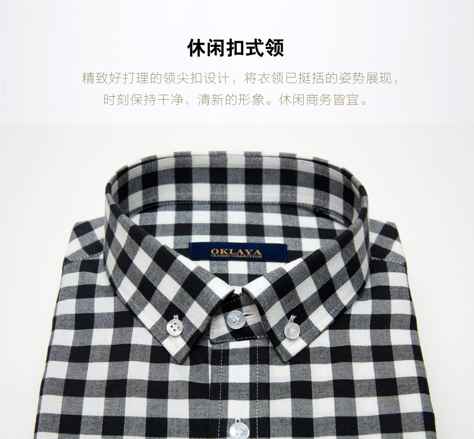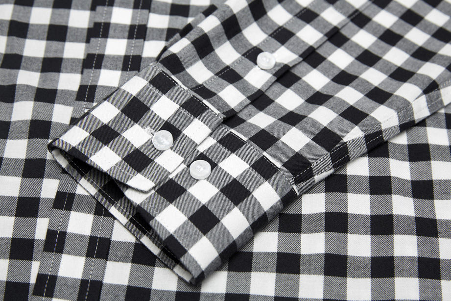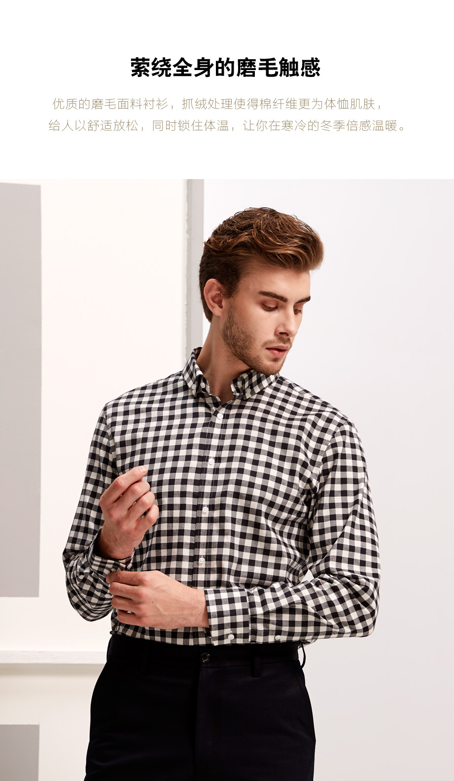| 款名: | 黑白格纹纯棉单面拉绒磨毛扣式领衬衫 | |||