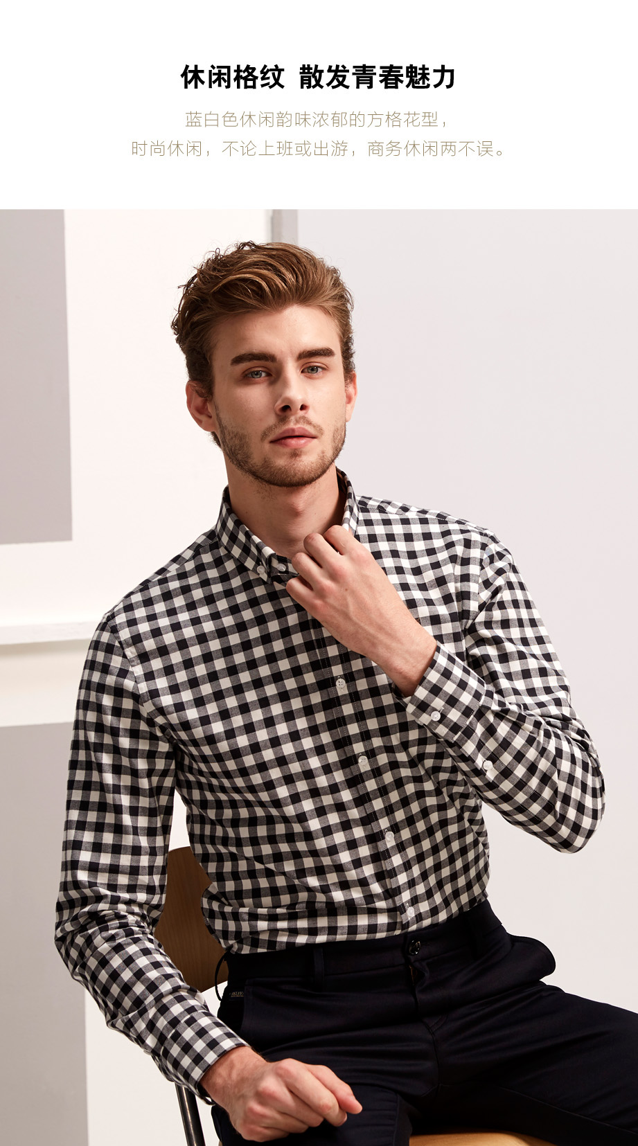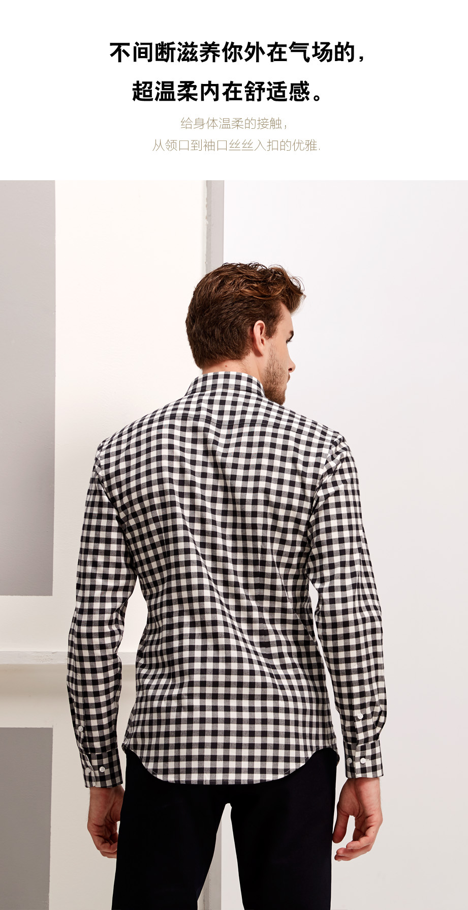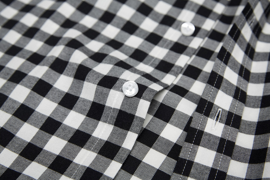 | 款名: | 黑白格纹纯棉单面拉绒磨毛扣式领衬衫 | |||