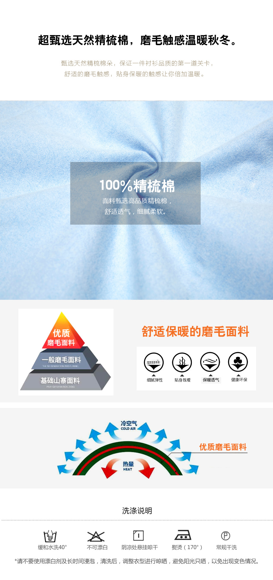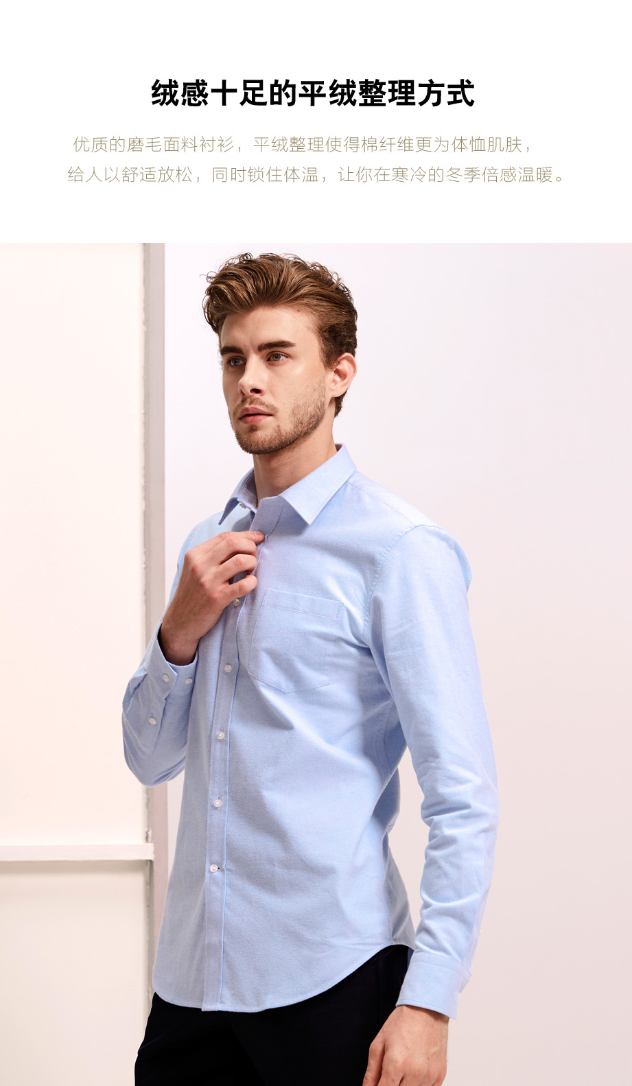 | 款名: | 淡蓝色平绒整理纯棉磨毛小尖领衬衫(厚) | |||||