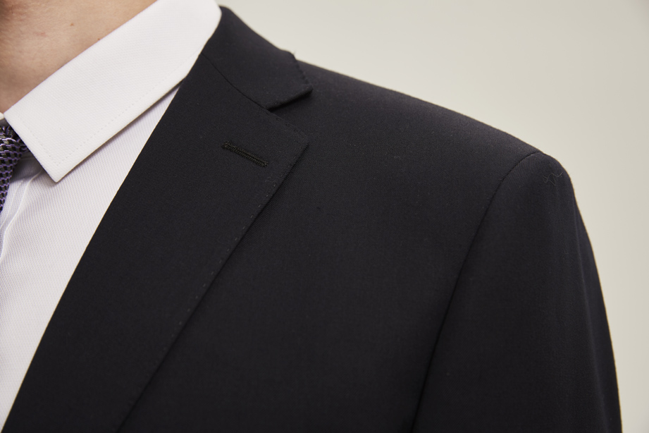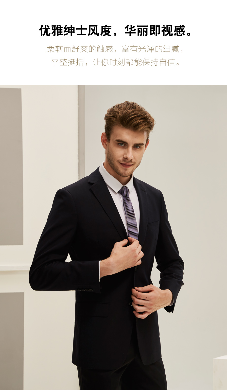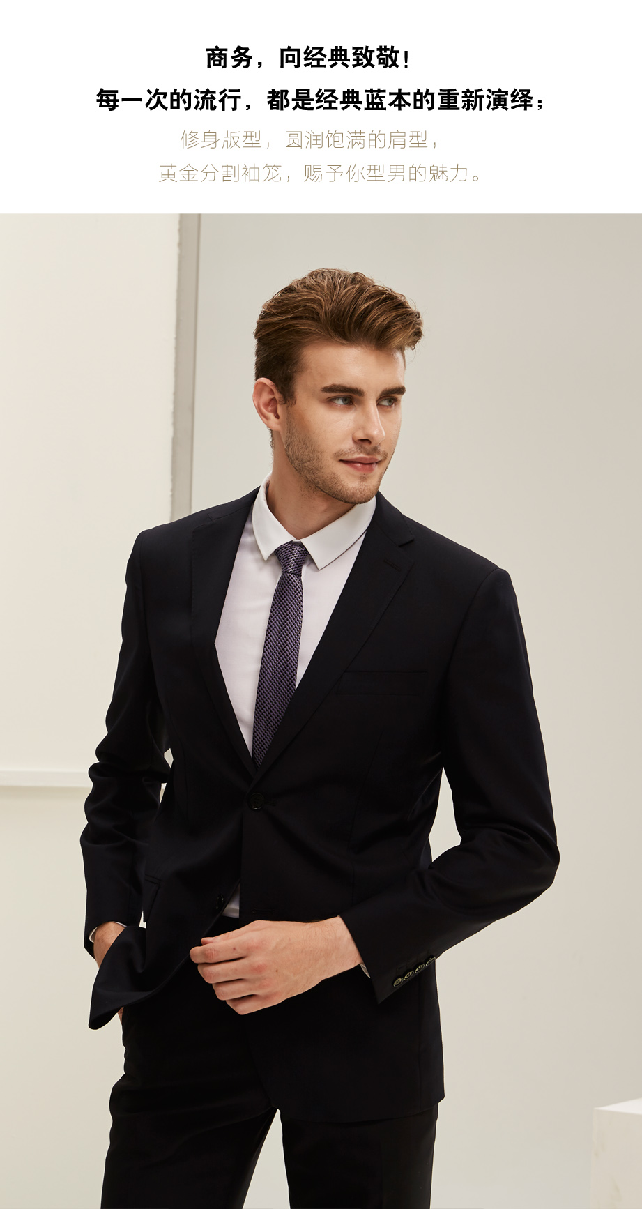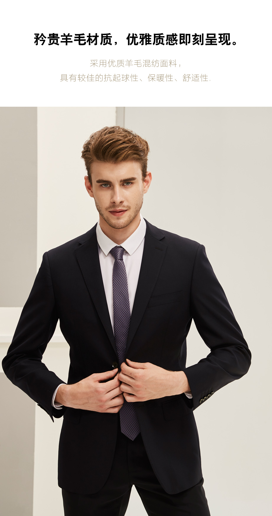 | 款名: | 藏蓝色哔叽羊毛混纺(48.3%毛)平驳领商务西装上衣 | |||||