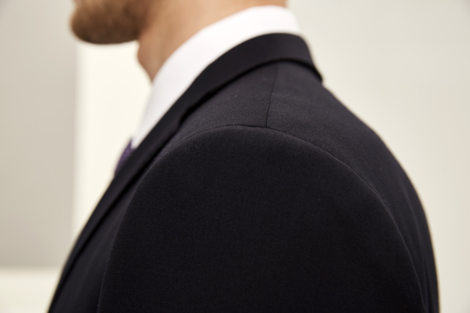 肩部平整,肩部线条更符合国人穿着标准,舒适挺括。