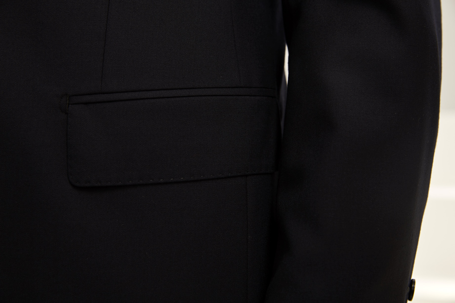 | 款名: | 藏蓝色哔叽羊毛混纺(48.3%毛)平驳领商务西装上衣 | |||