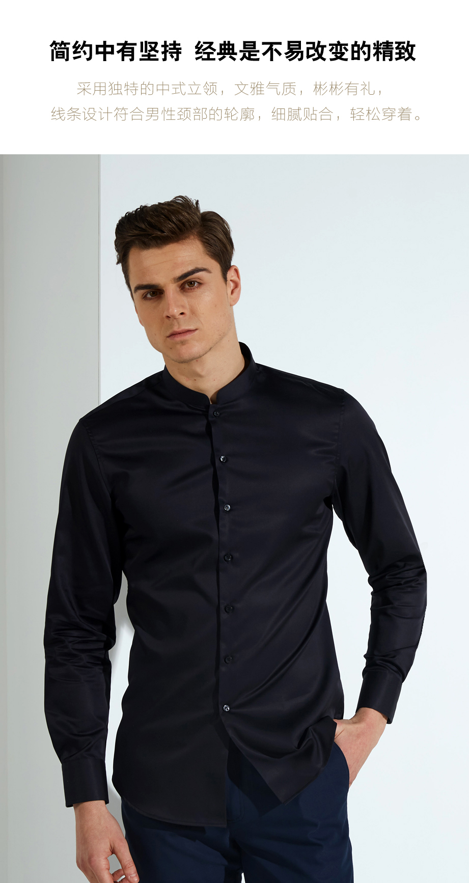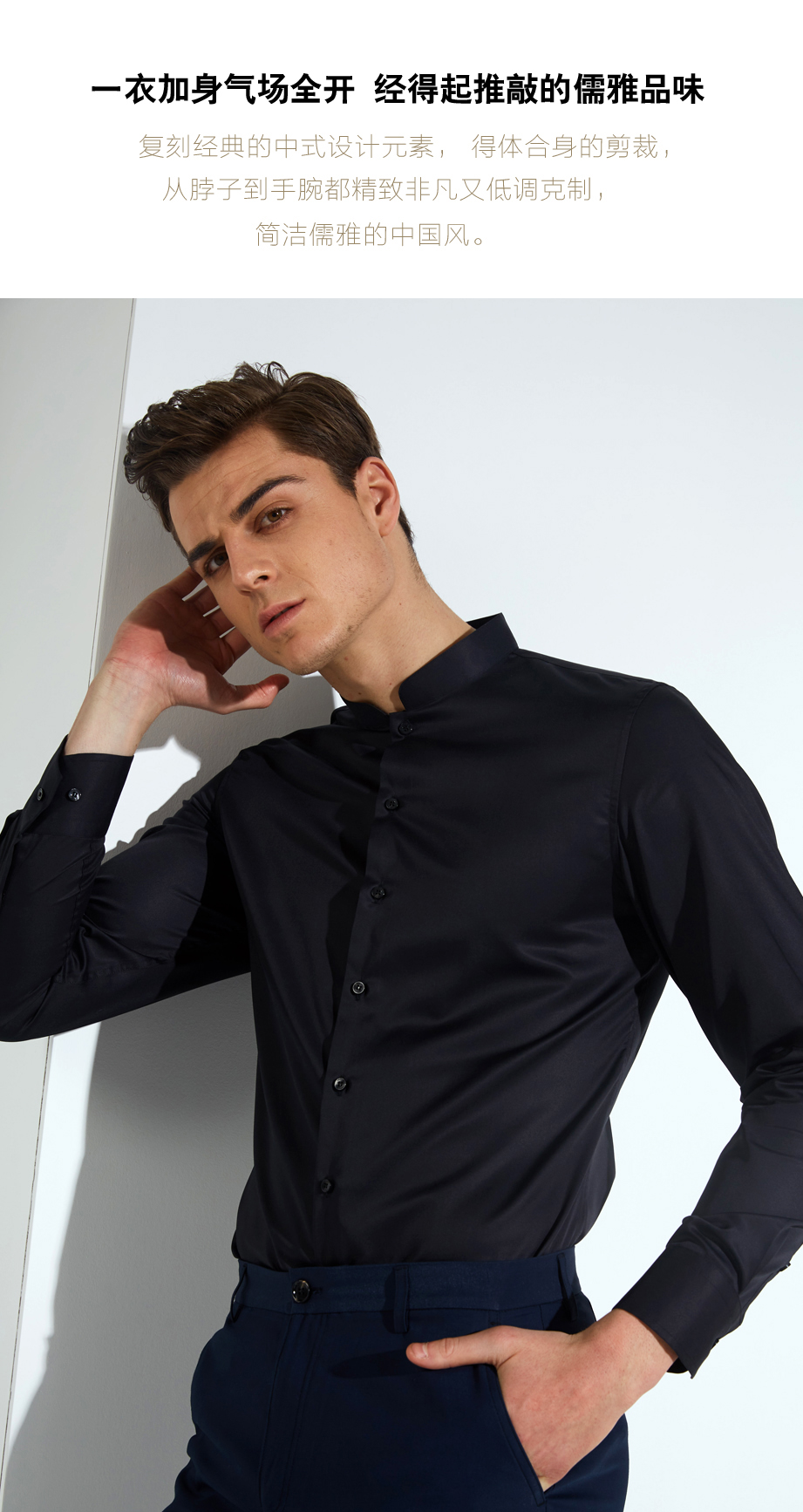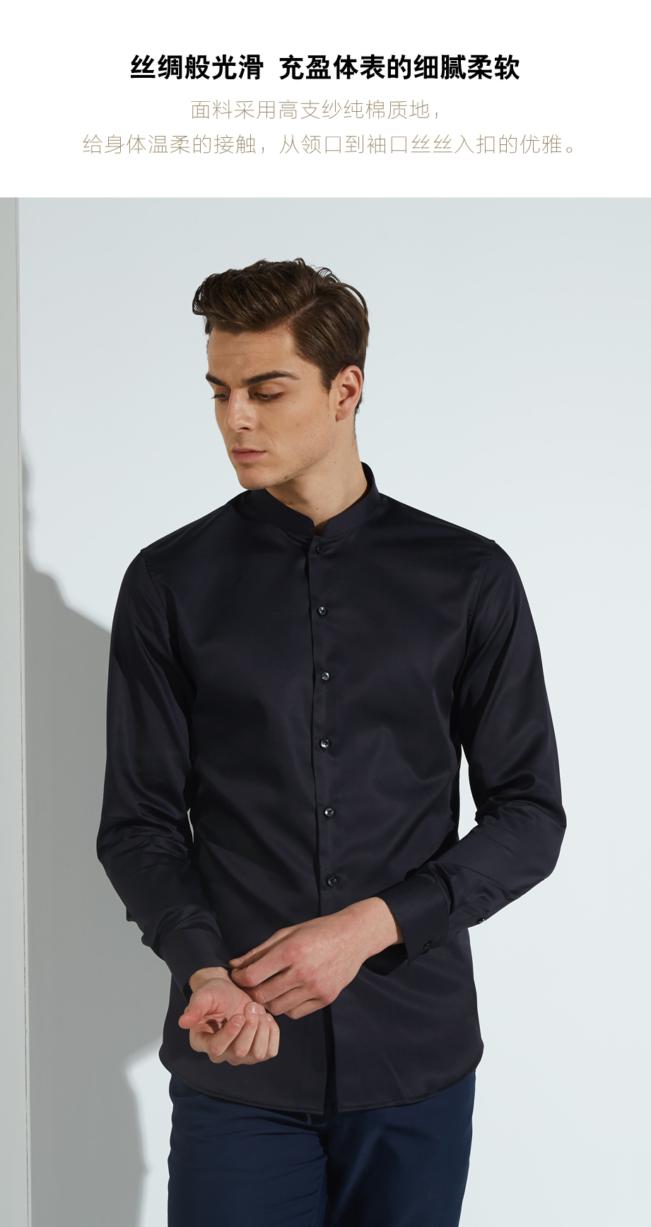 | 款名: | 黑色纯棉贡缎国风立领春秋衬衫 | |||