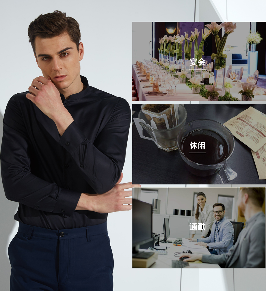 文雅气质,彬彬有礼,线条设计符合男性颈部的轮廓,细腻贴合,轻松穿着。
