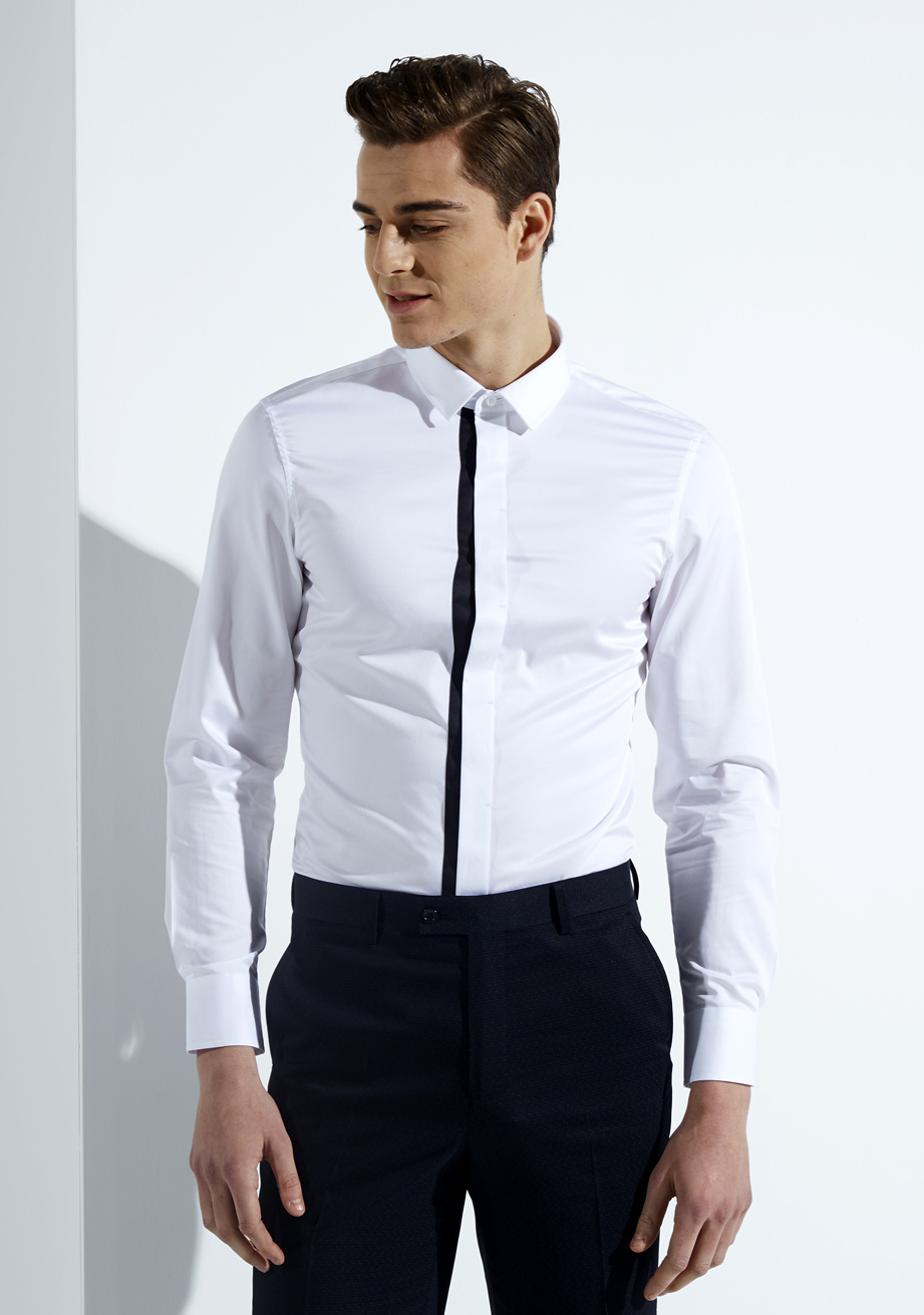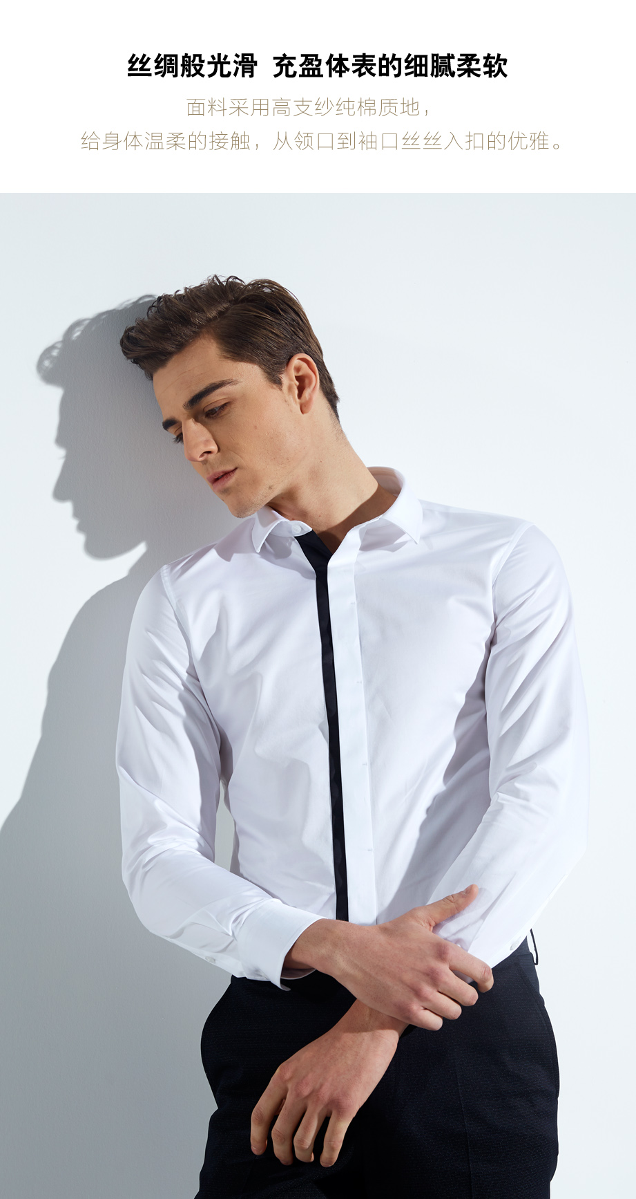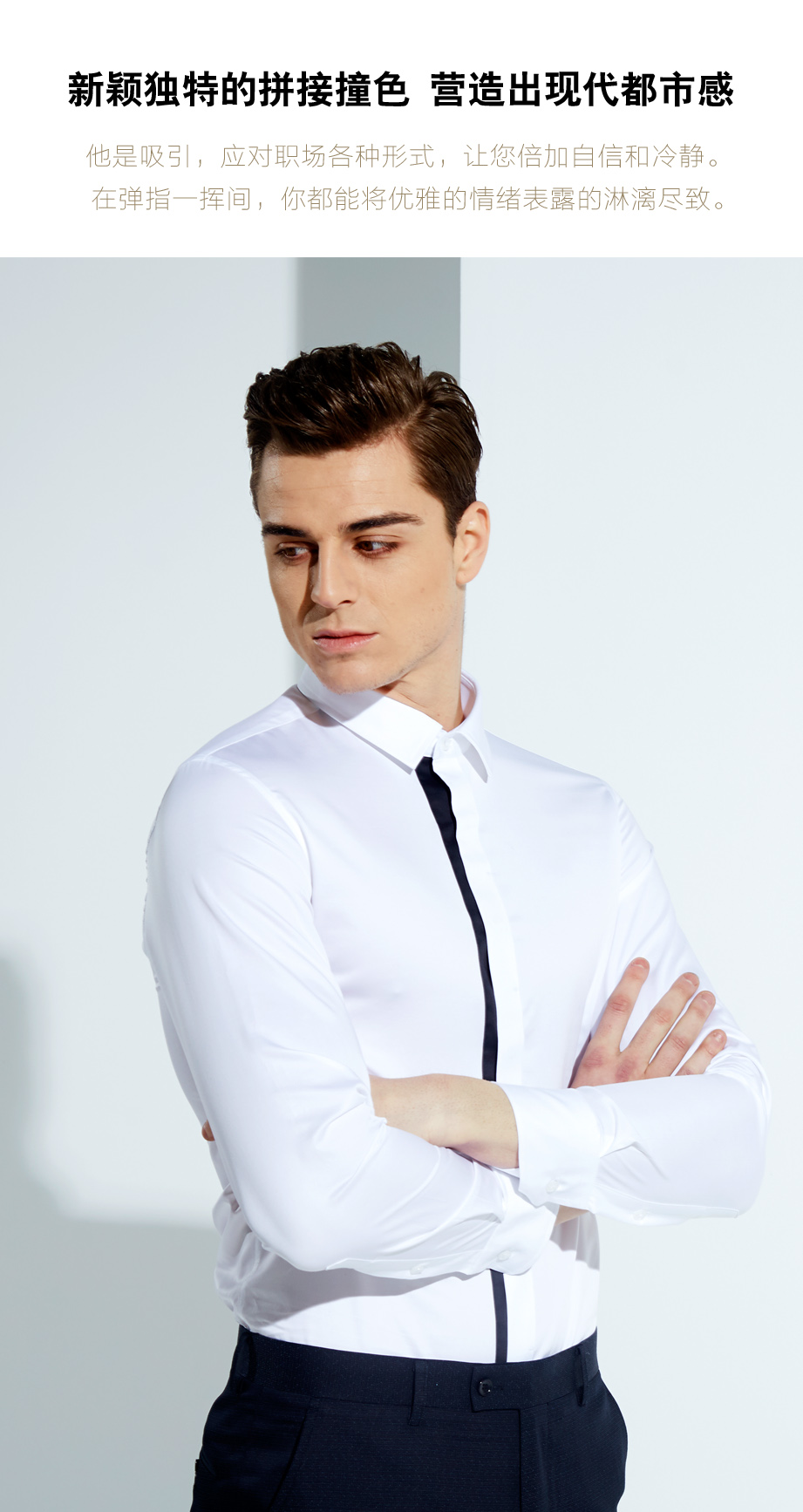 | 款名: | 白色纯棉贡缎拼色春秋款衬衫 | |||||