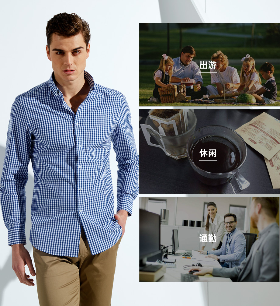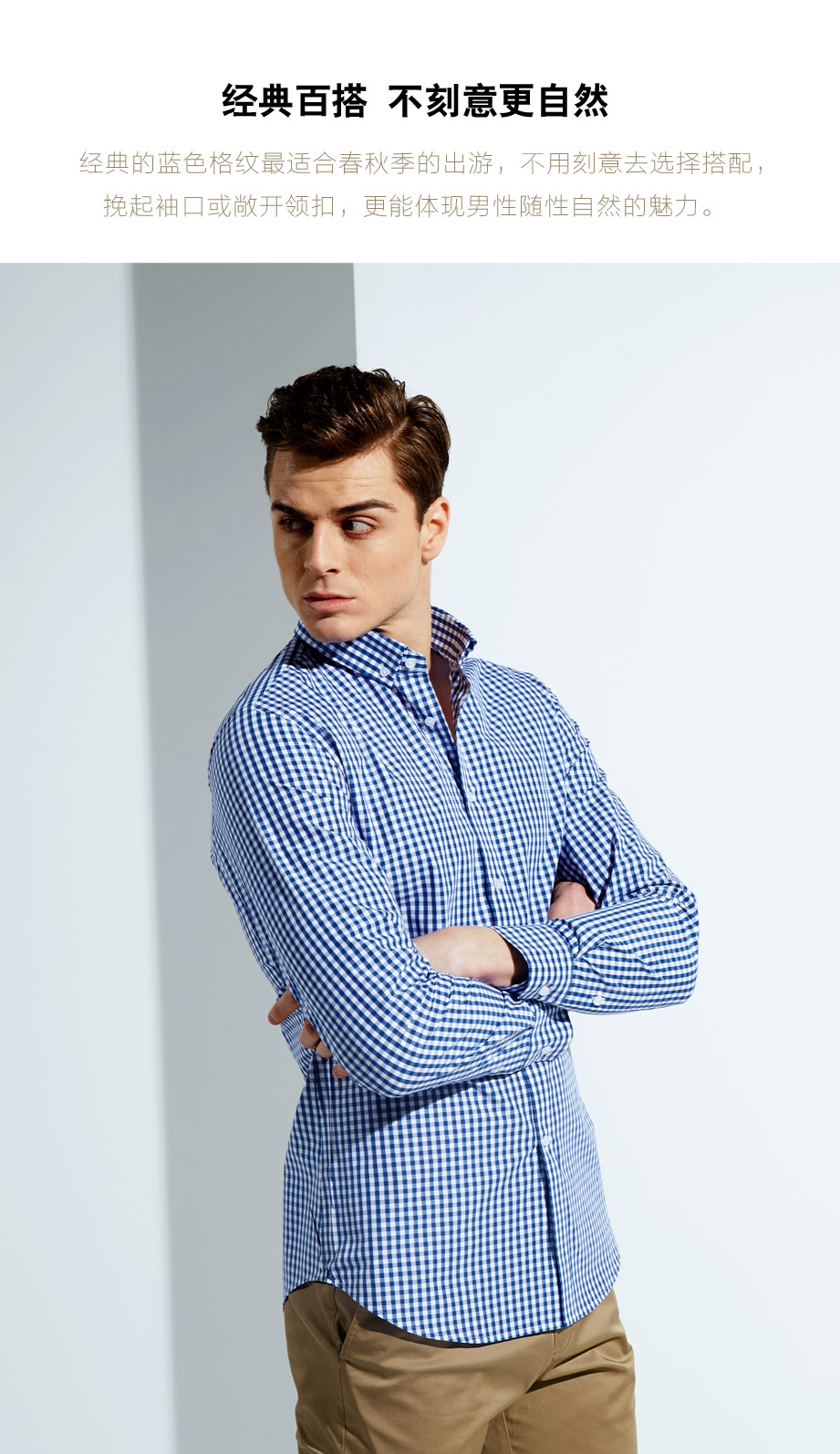| 款名: | 蓝白小方格纹纯棉休闲春秋款衬衫 | |||