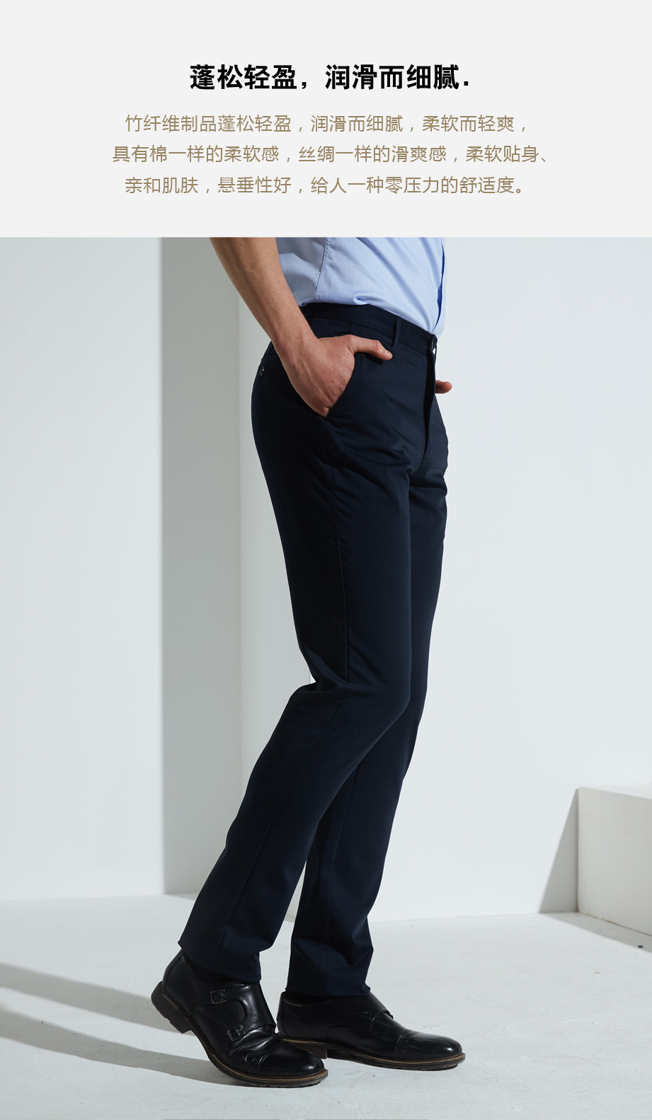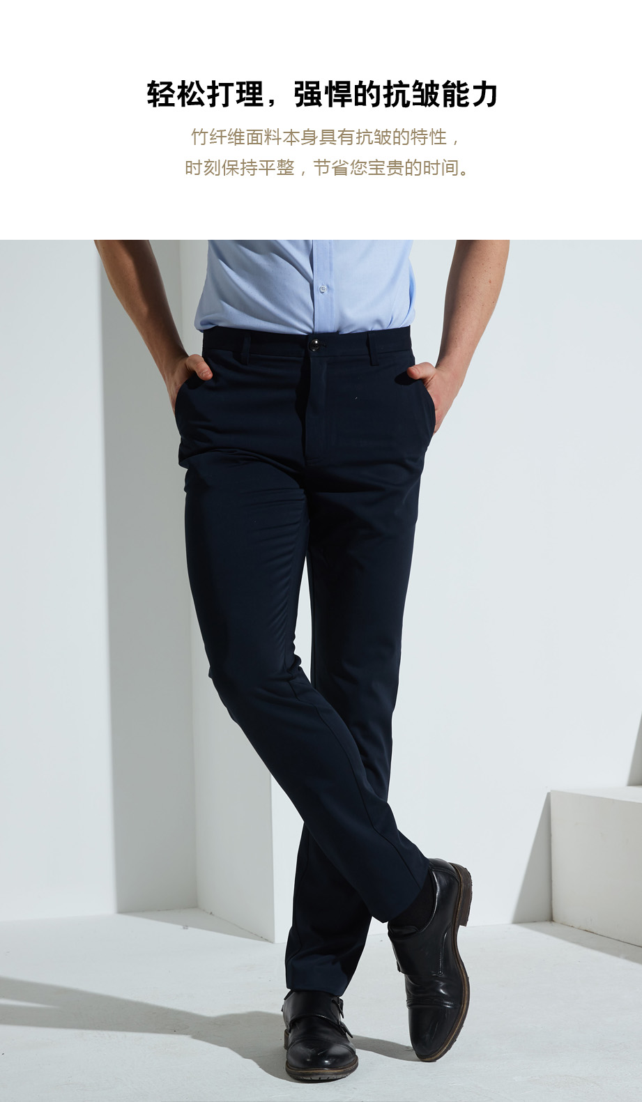 | 款名: | 藏青色竹纤维混纺微弹春秋款休闲裤 | |||