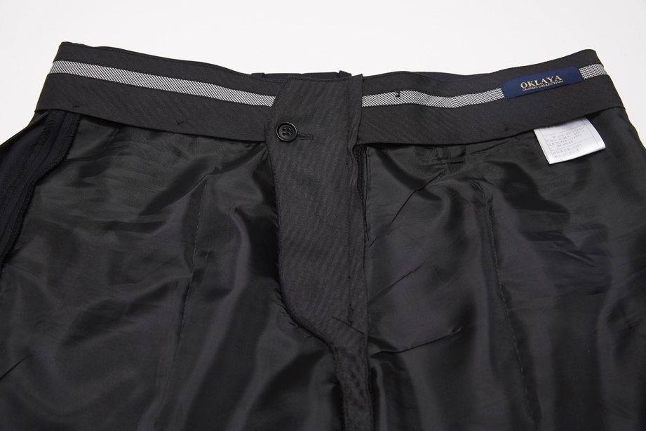 | 款名: | 藏蓝色羊毛(100%毛)聚酯纤维混纺贡丝春秋款商务西裤 | |||||