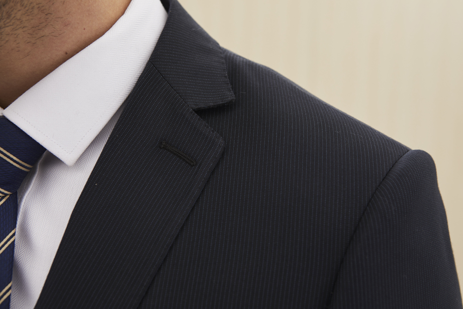 | 款名: | 藏青色条纹仿毛春秋商务西装 | |||