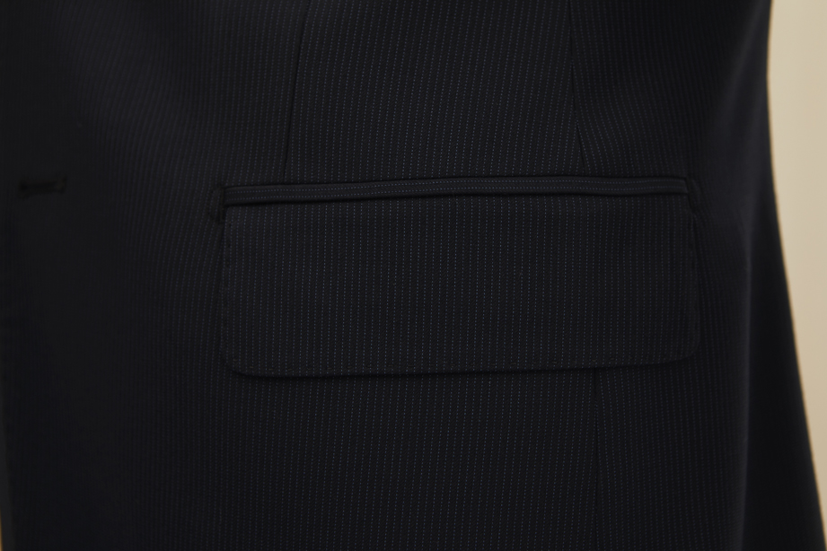 两侧采用双开线口袋,方形袋盖,简洁干练。