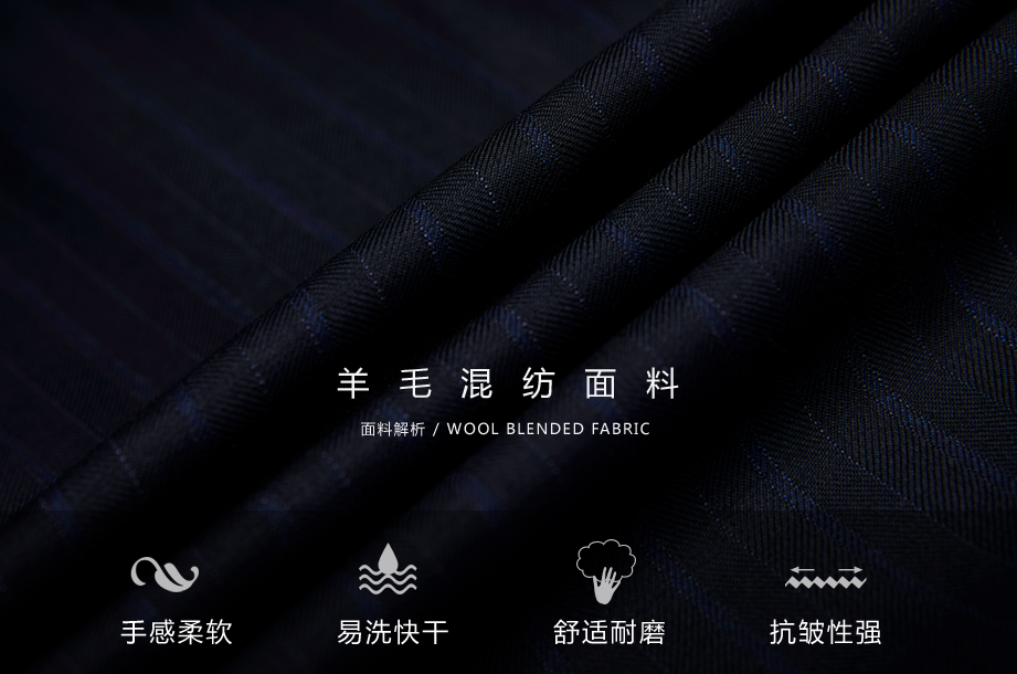 采用纯正羊毛与纤维混纺,手感柔滑,柔软、细腻、富有弹性,保暖效果好;;色泽自然柔和,抗皱回弹率高,能迅速恢复原状,舒适耐磨易打理。