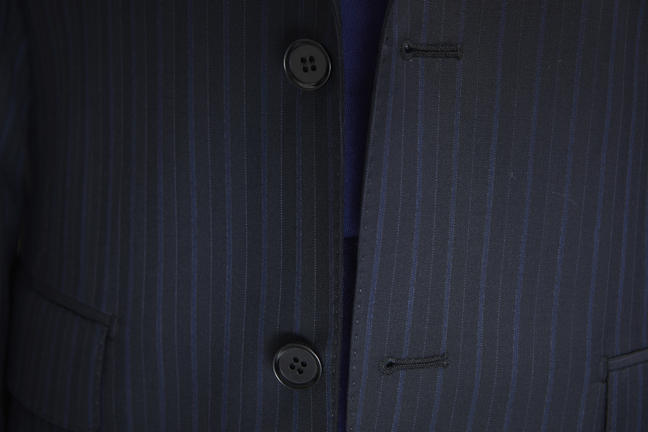 | 款名: | 蓝黑色宽条纹羊毛混纺春秋商务西装 | |||||