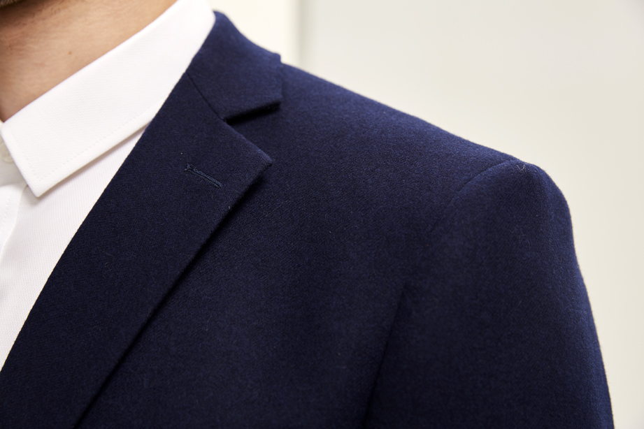 肩部平整,肩部线条更符合国人穿着标准,舒适挺括。
