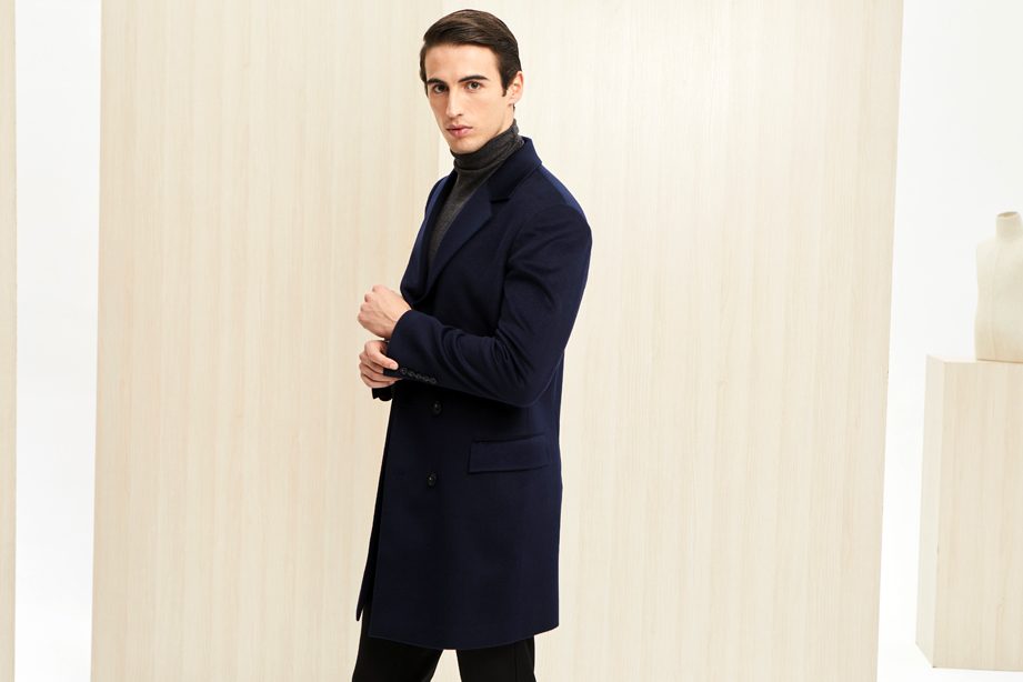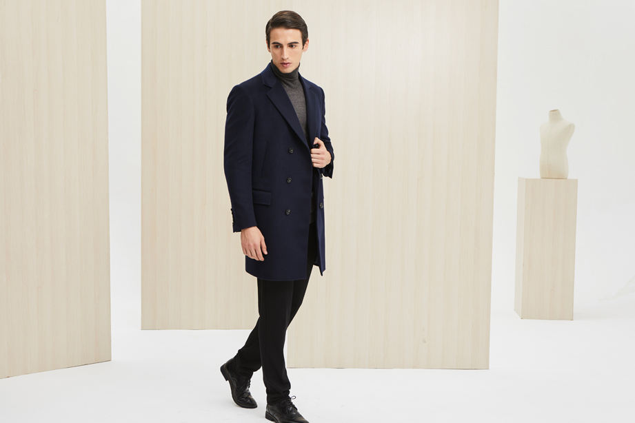 | 款名: | 藏蓝色羊绒(11.7%绒)双排扣英伦休闲大衣 | |||