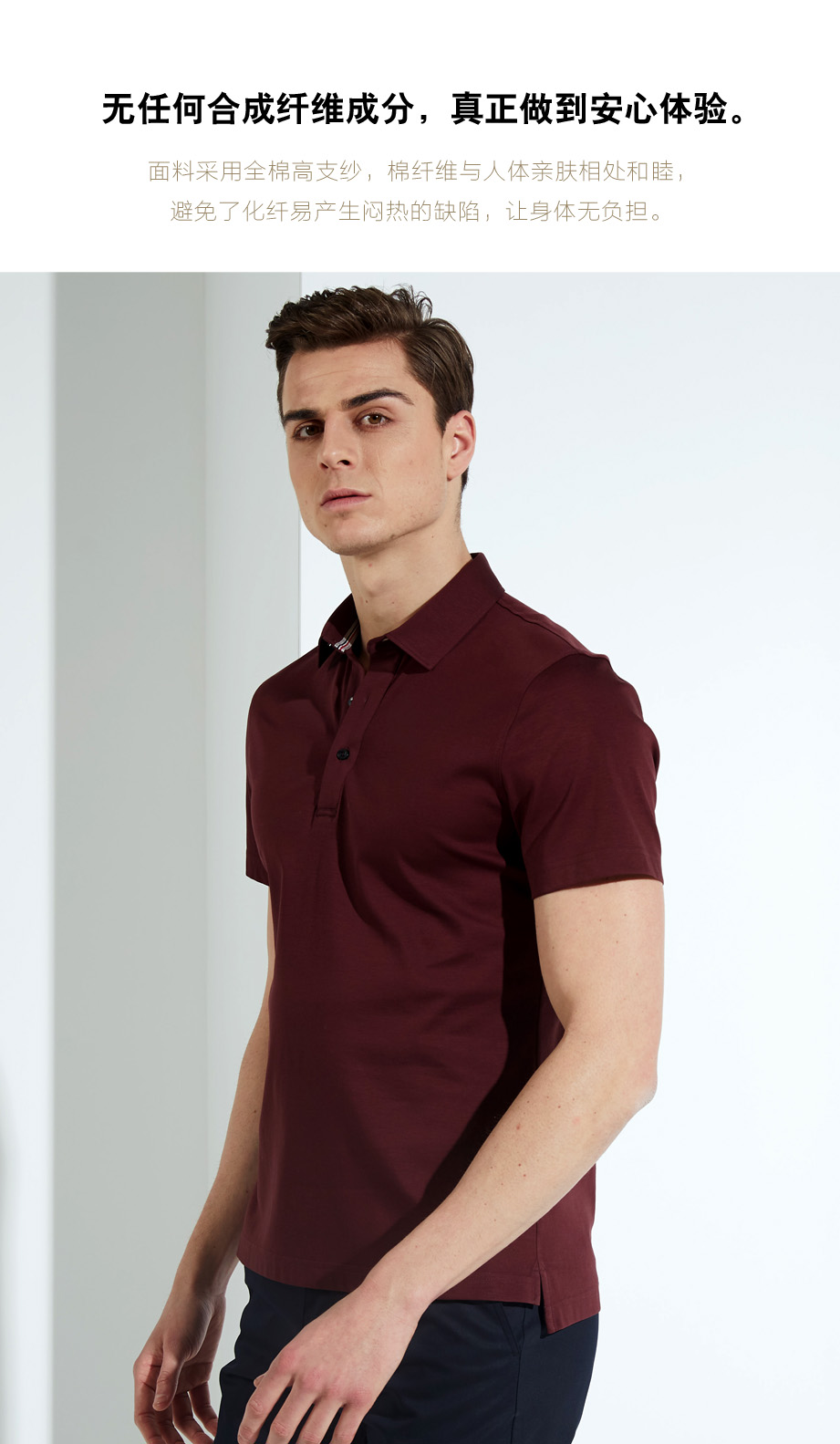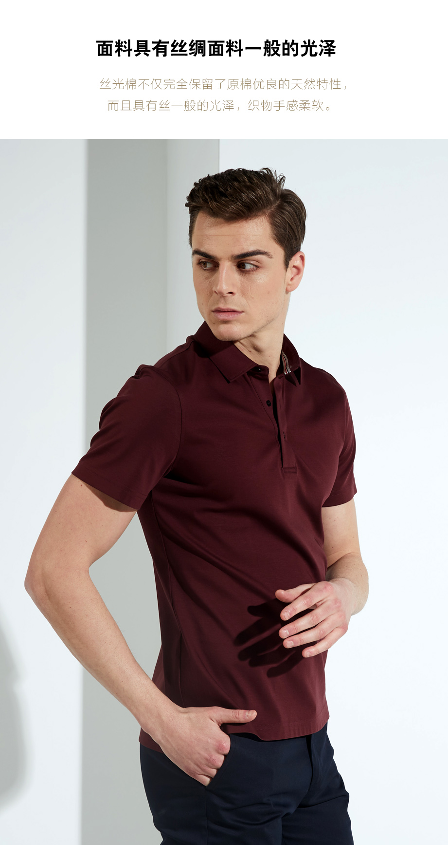 | 款名: | 酱红色丝光棉夏季休闲短袖POLO | |||||