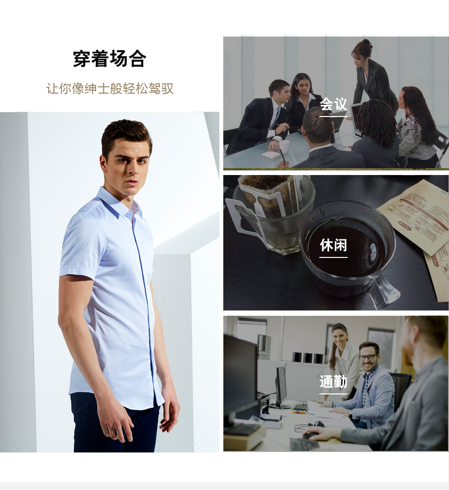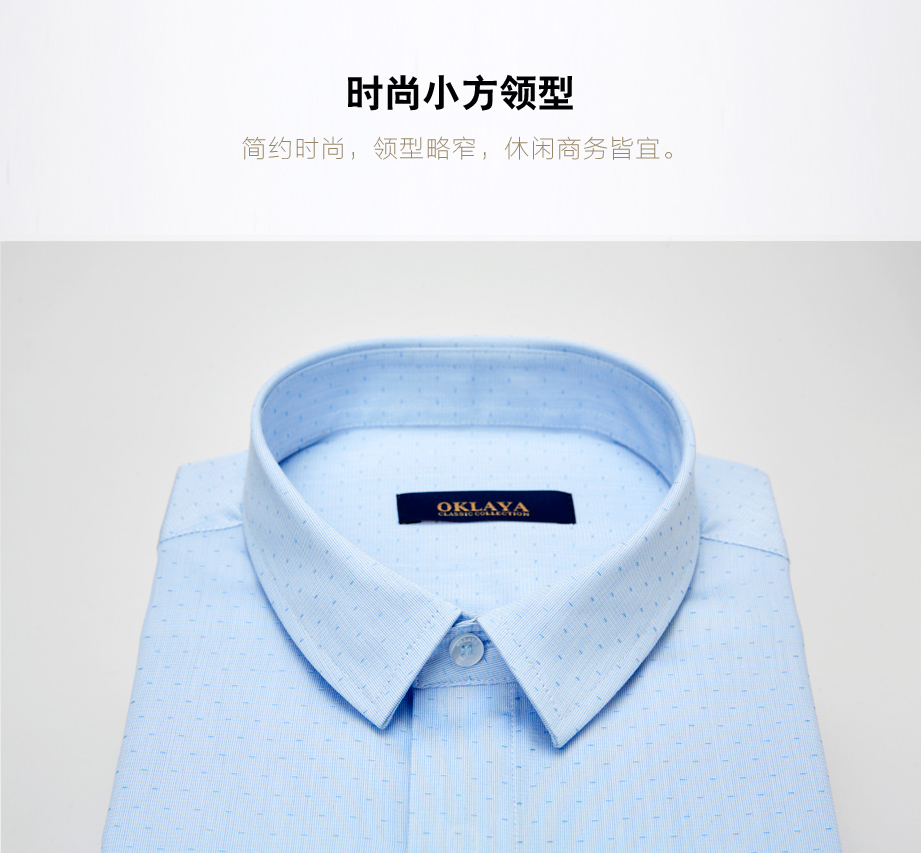 | 款名: | 浅蓝色纯棉波点提花暗门襟夏季商务休闲短袖衬衫 | |||||