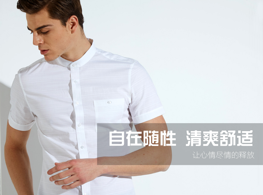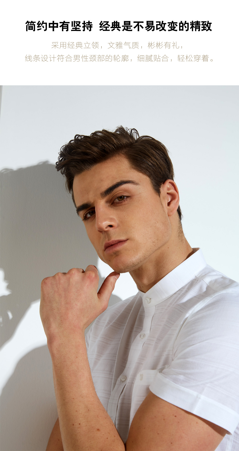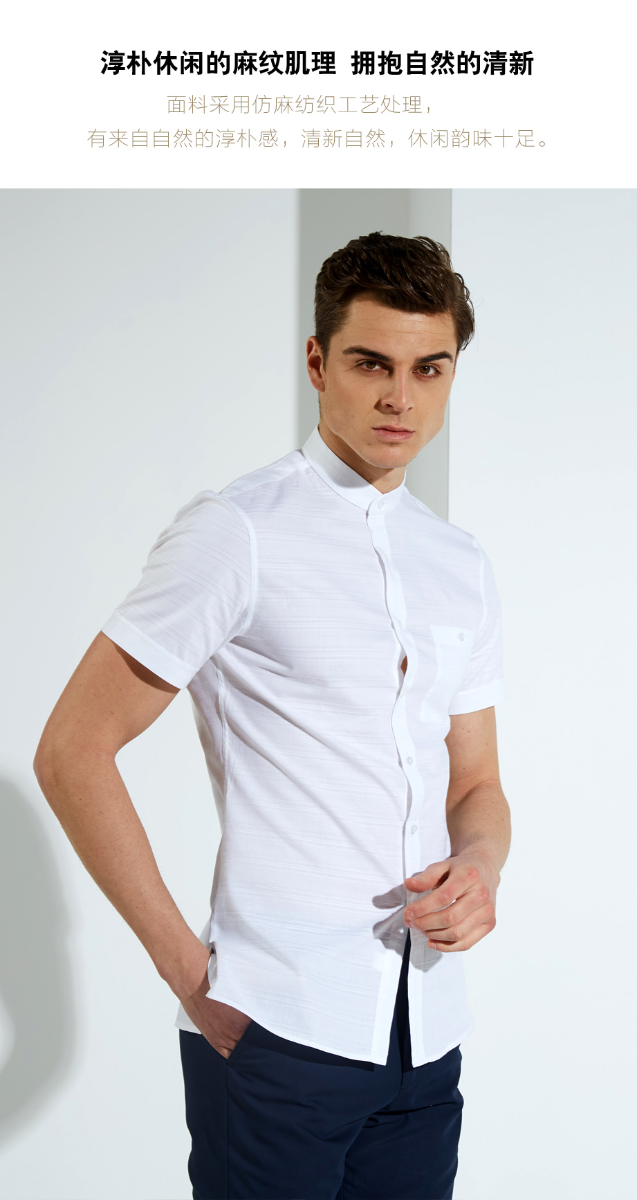 | 款名: | 白色纯棉横纹仿麻纹理夏季休闲短袖衬衫 | |||||