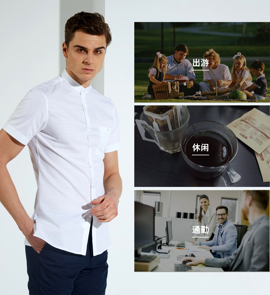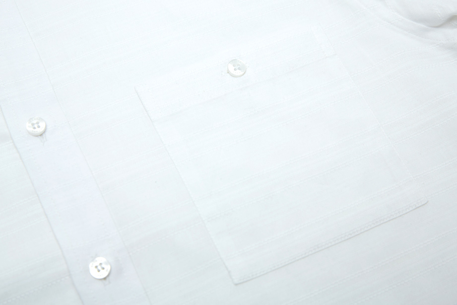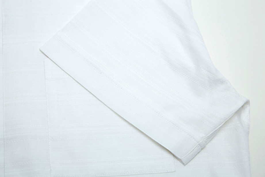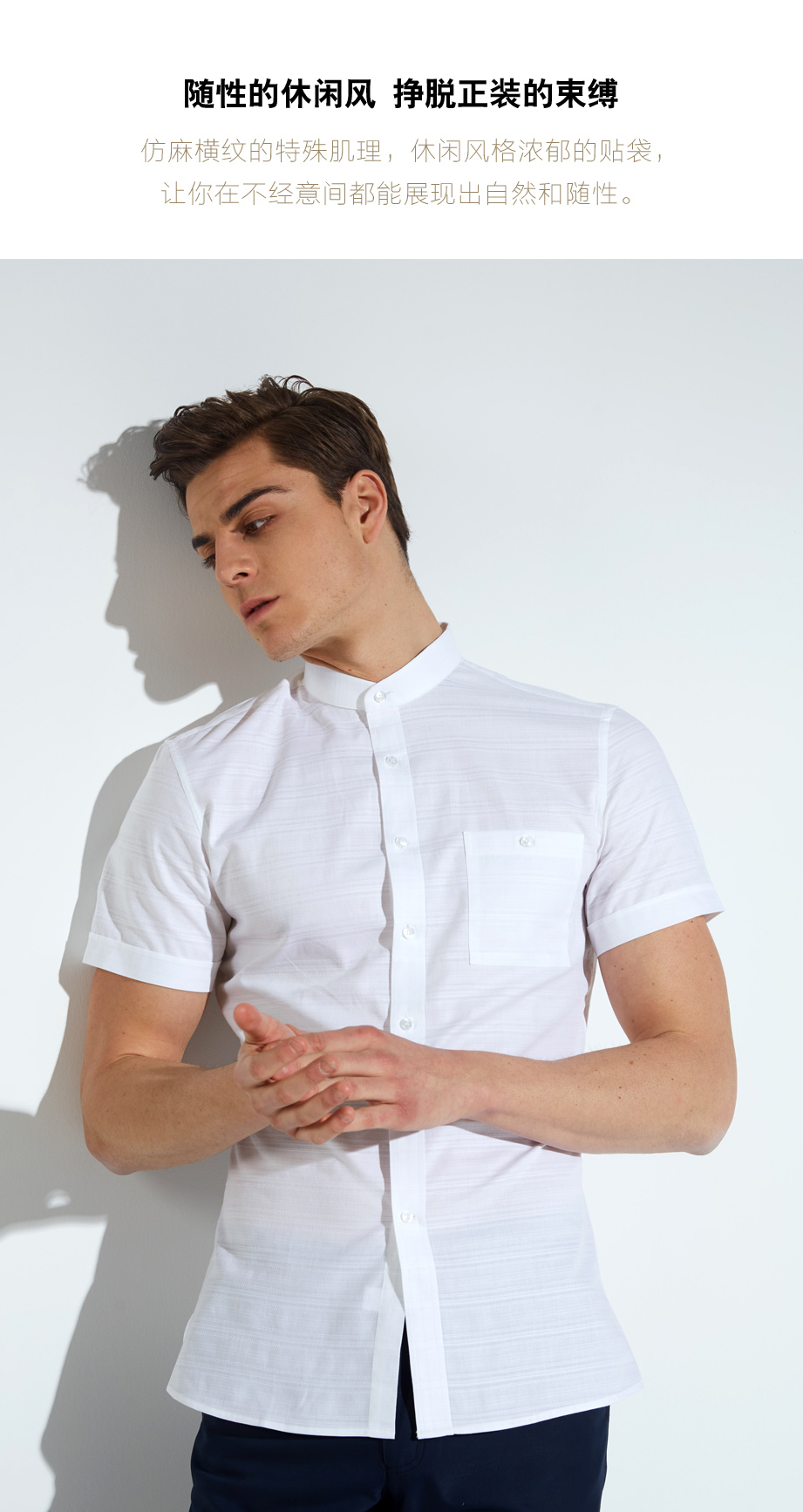 | 款名: | 白色纯棉横纹仿麻纹理夏季休闲短袖衬衫 | |||
