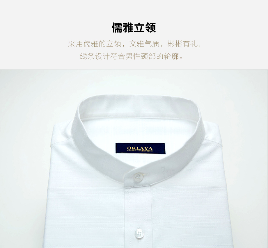 休闲立领,简洁儒雅,更适合国人颈部曲线穿着: 采用德国骏马内衬,更加力挺耐穿,多次洗涤仍然能保持原型。