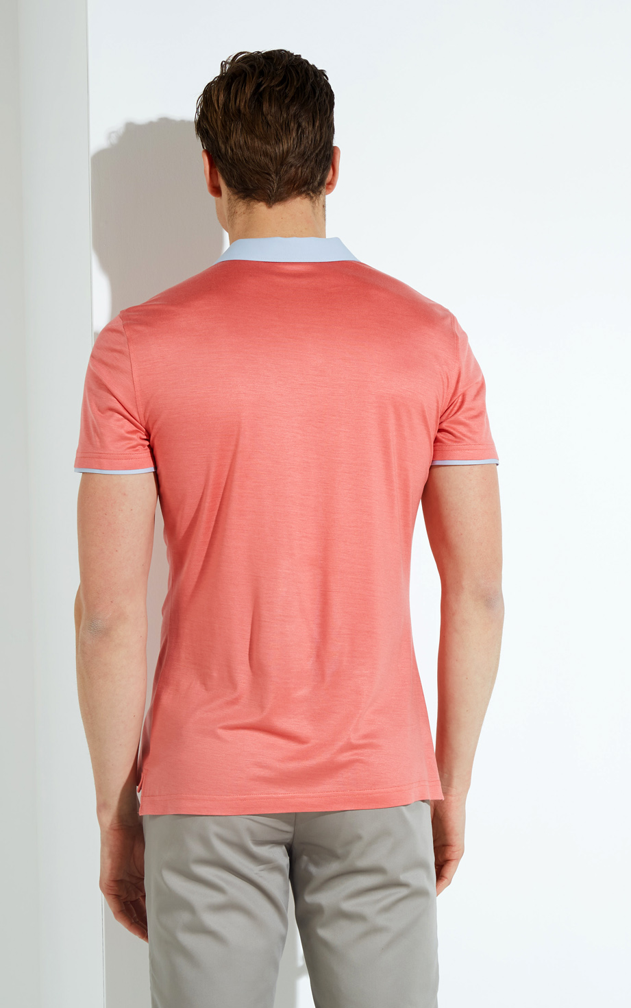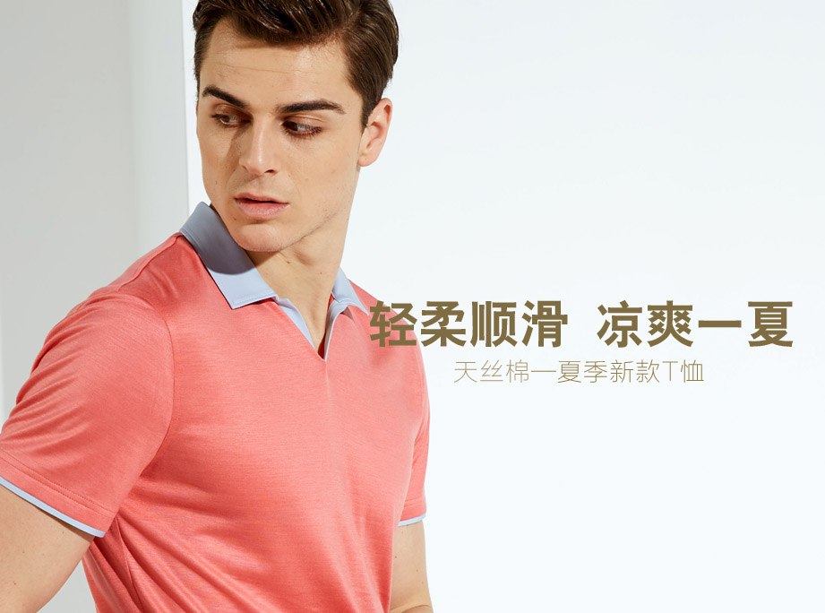| 款名: | 彤色天丝棉混纺拼色V型领夏季休闲短袖POLO | |||
