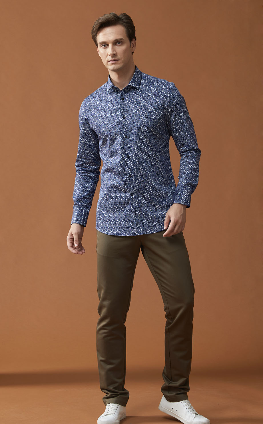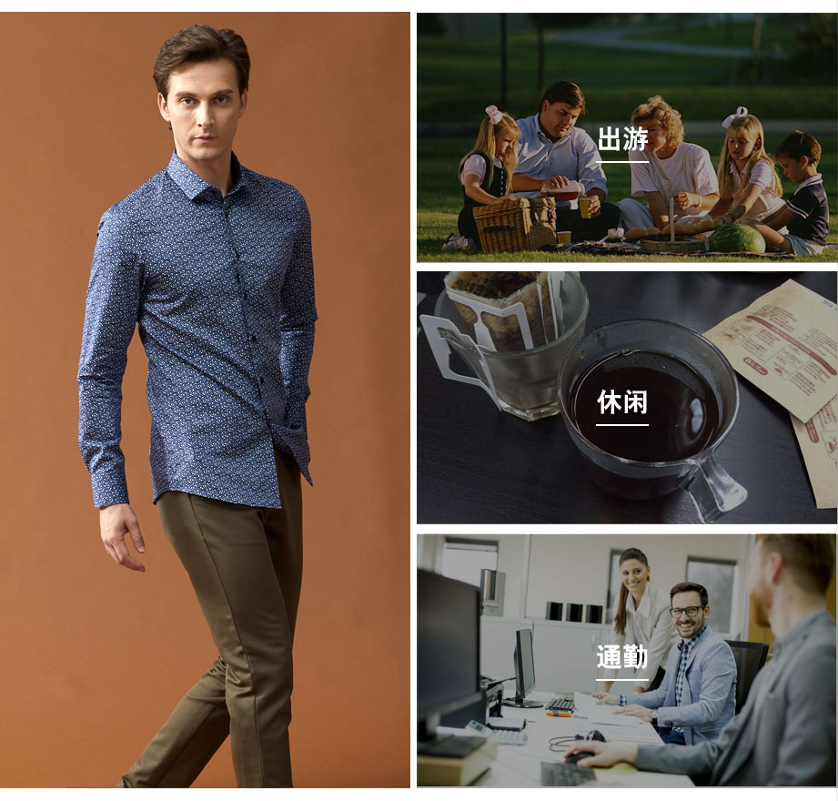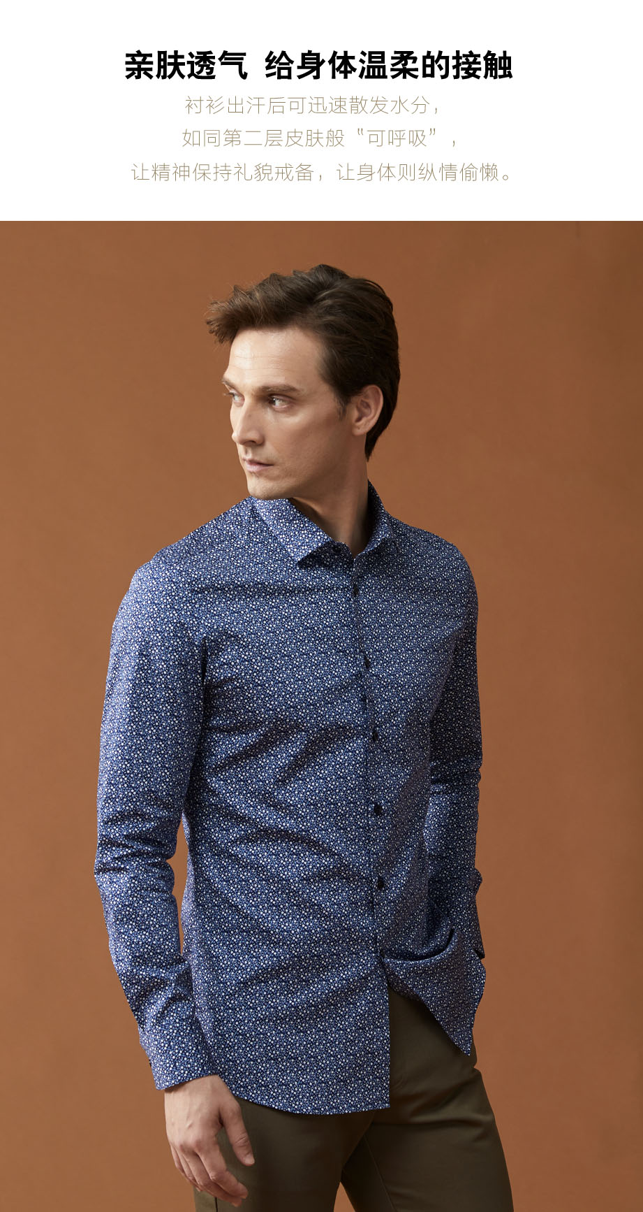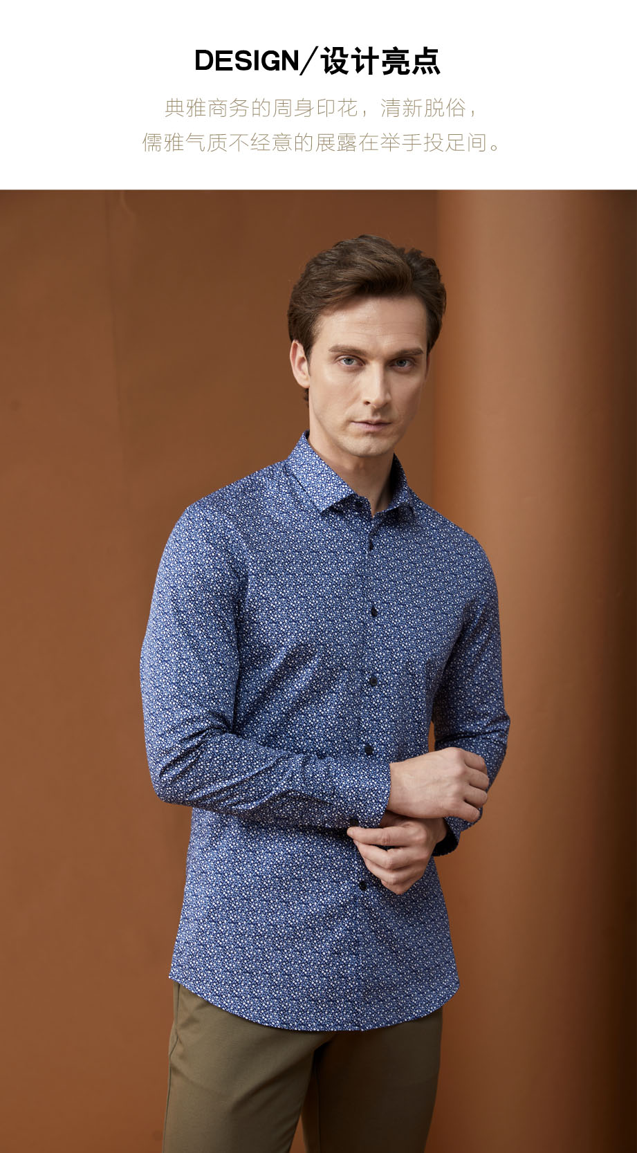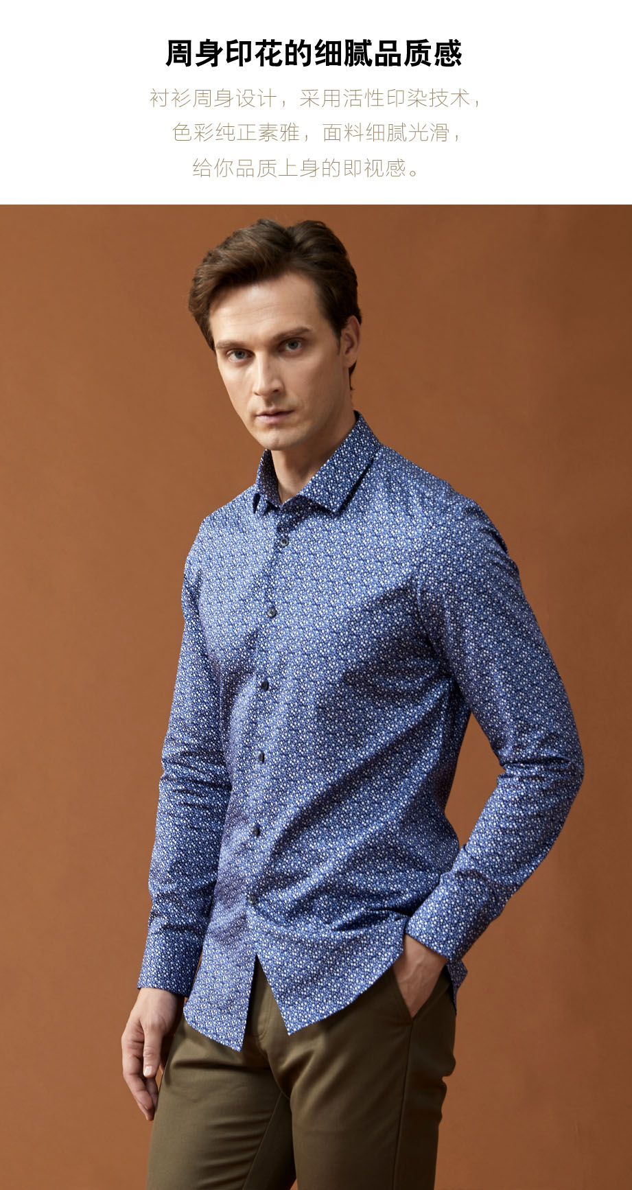| 款名: | 深蓝色周身印花休闲长袖衬衫 | |||
