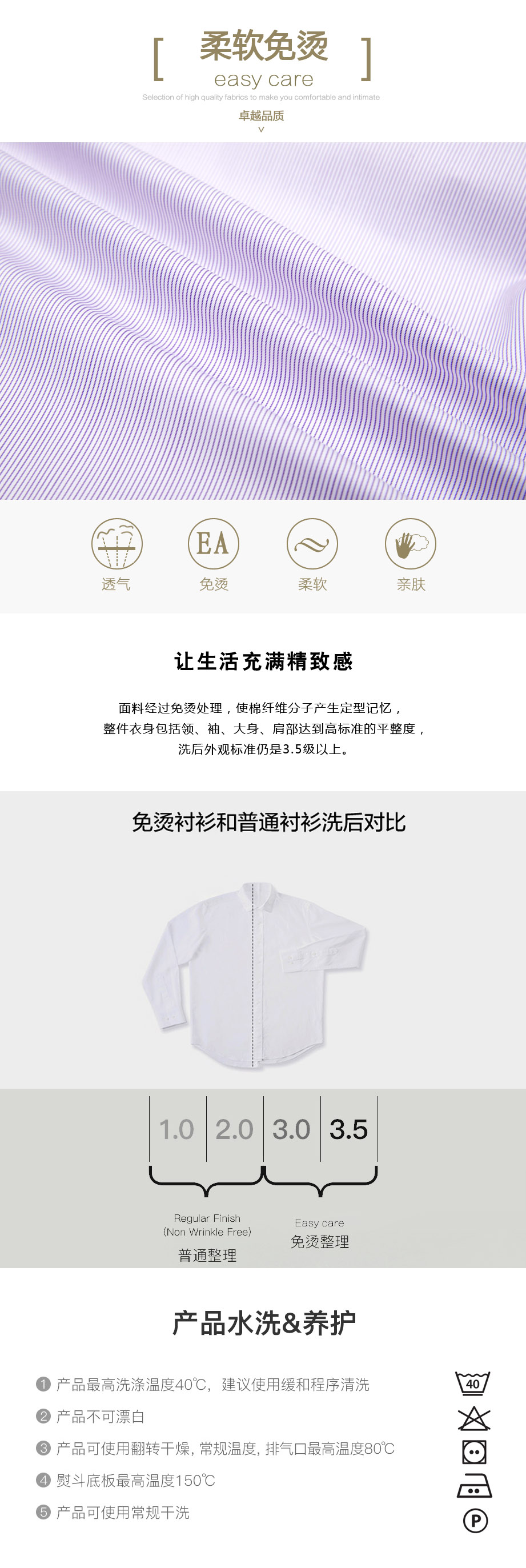 | 款名: | easy-care 白紫色条纹纯棉柔软免烫长袖衬衫 | |||||