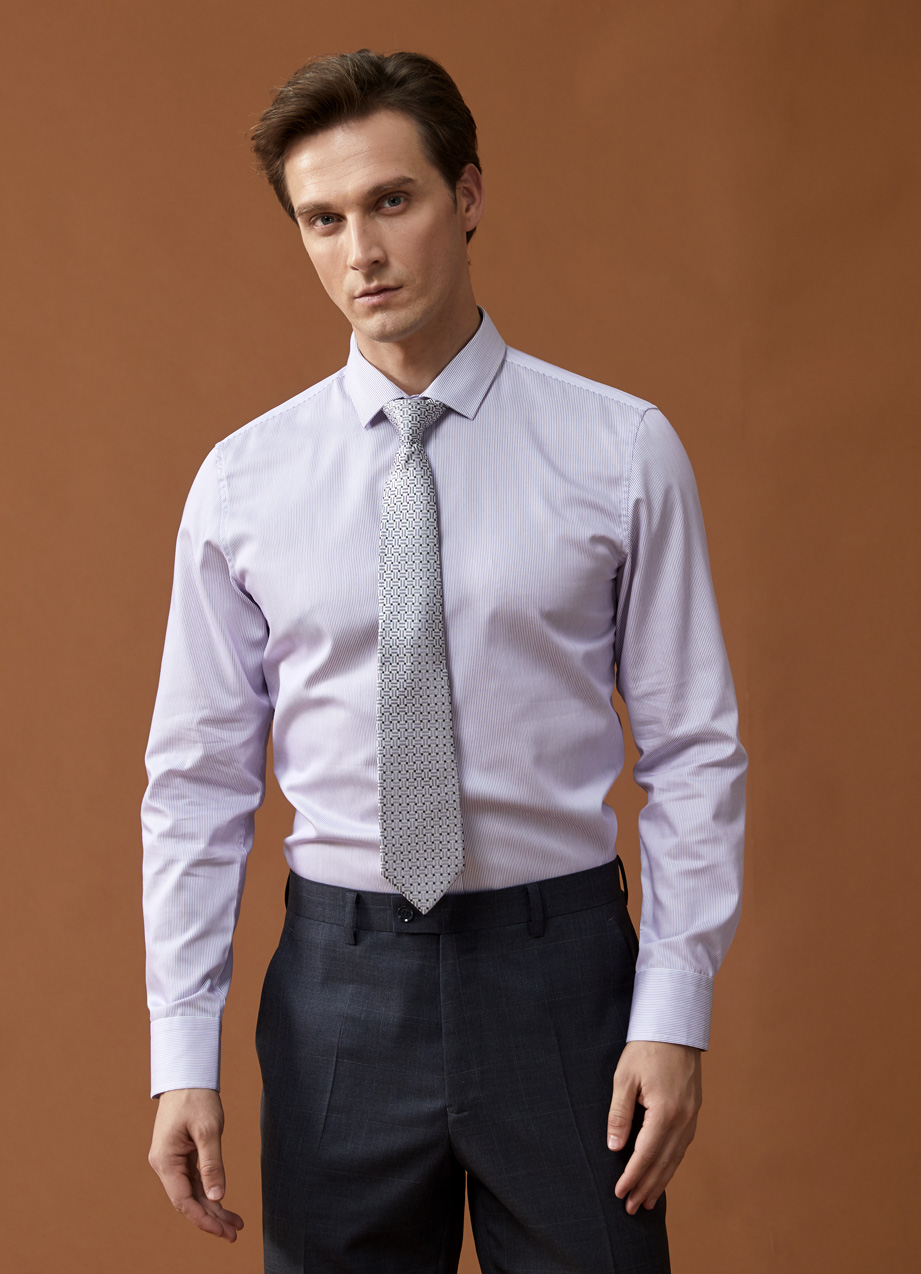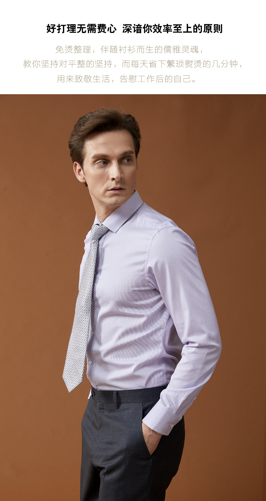 | 款名: | easy-care 白紫色条纹纯棉柔软免烫长袖衬衫 | |||