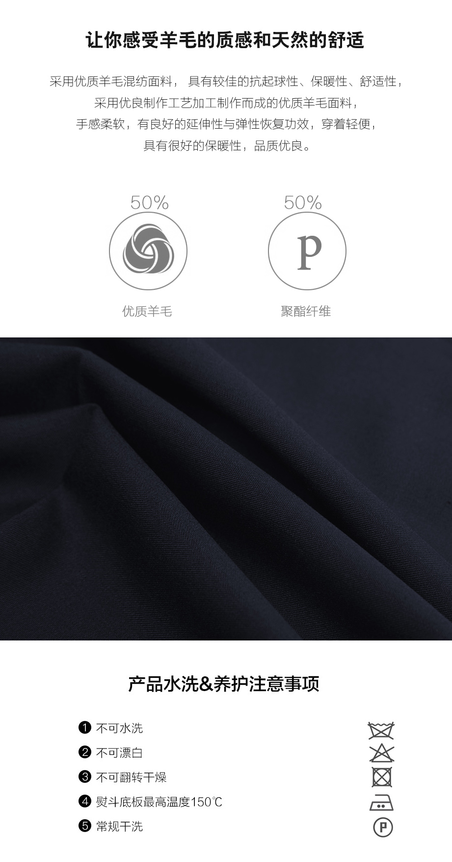 | 面料: | 50%毛50%涤 | 柔软: |