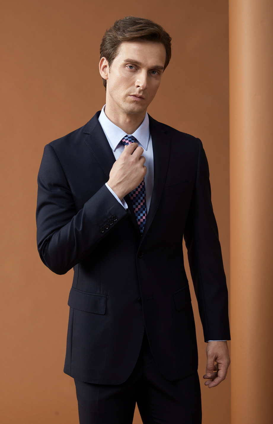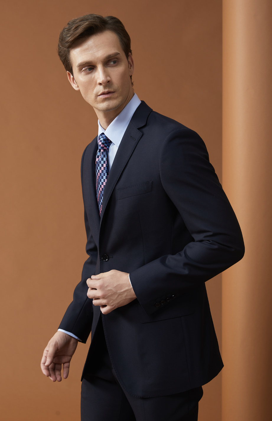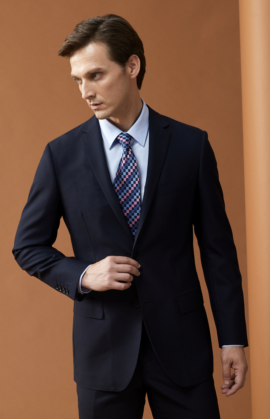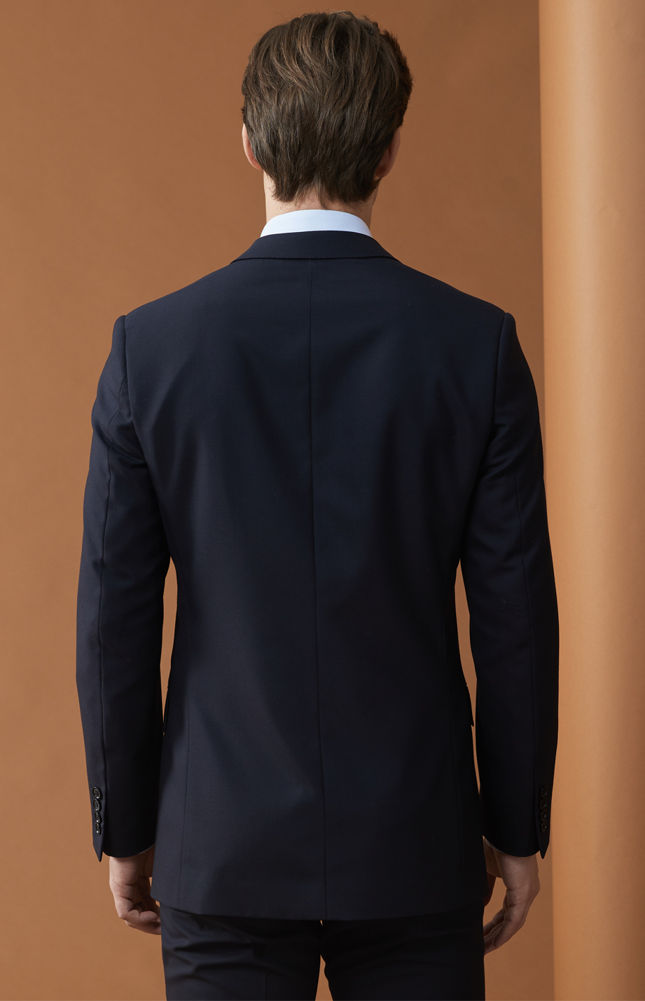 | 款名: | 藏蓝色毛涤混纺(50%毛)商务西装上衣 | |||
