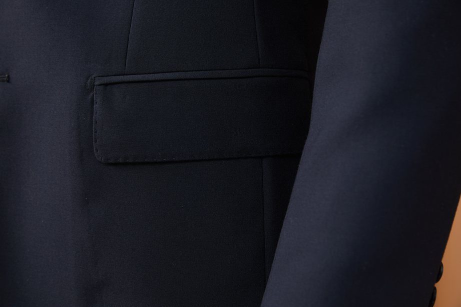 两侧采用经典西装口袋,做工平整服帖。
