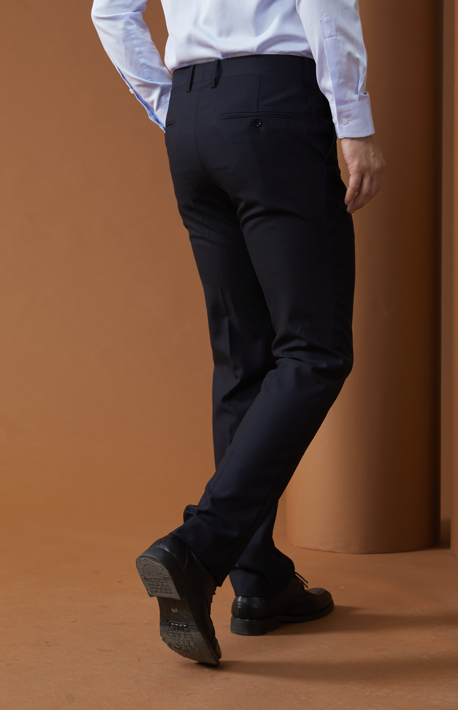 | 款名: | 藏蓝色毛涤混纺(50%毛)商务西裤 | |||