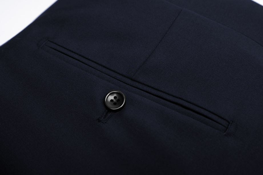 平整精细后双开线口袋,一次开机形成上下唇精美纹和,简约大气。