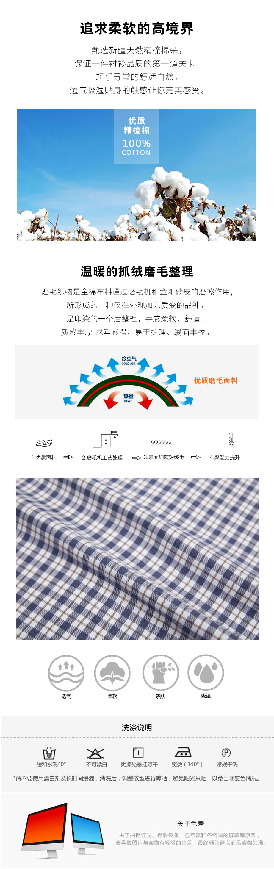 | 款名: | 蓝咖格纹纯棉磨毛休闲衬衫 | |||||