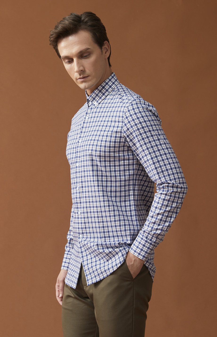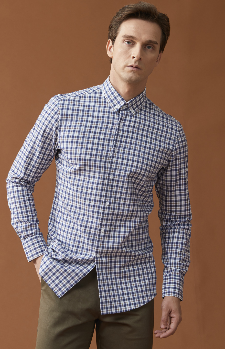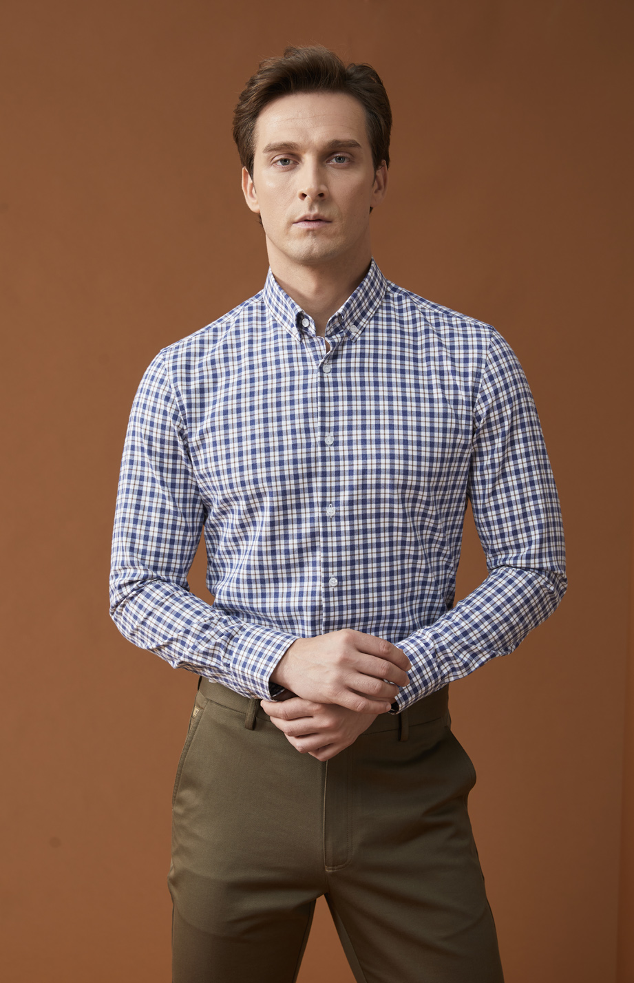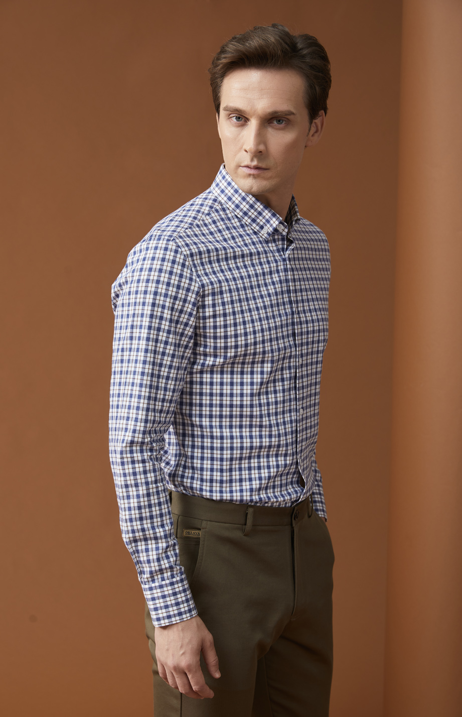 | 款名: | 蓝咖格纹纯棉磨毛休闲衬衫 | |||