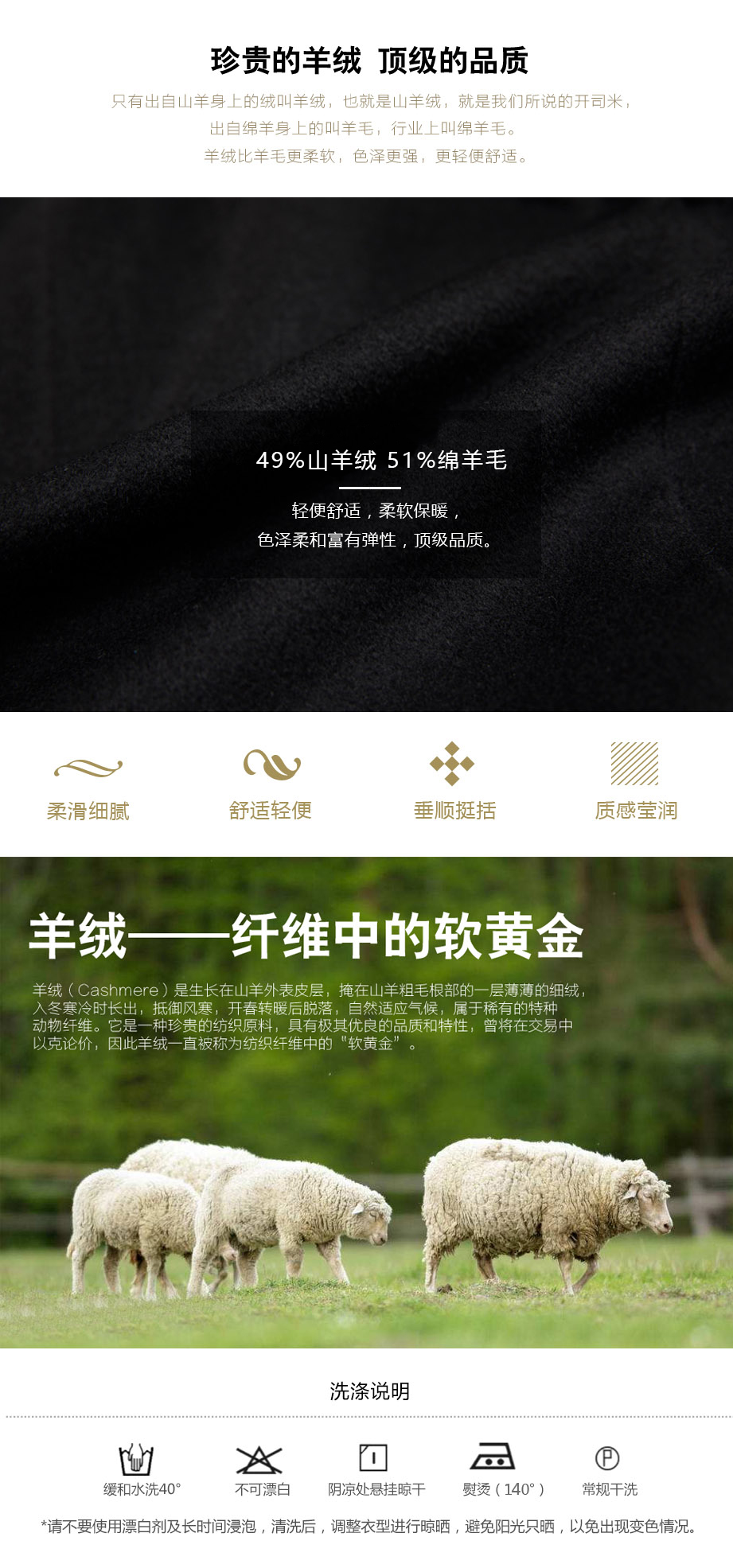 | 面料: | 49%山羊绒51%绵羊毛 | |||