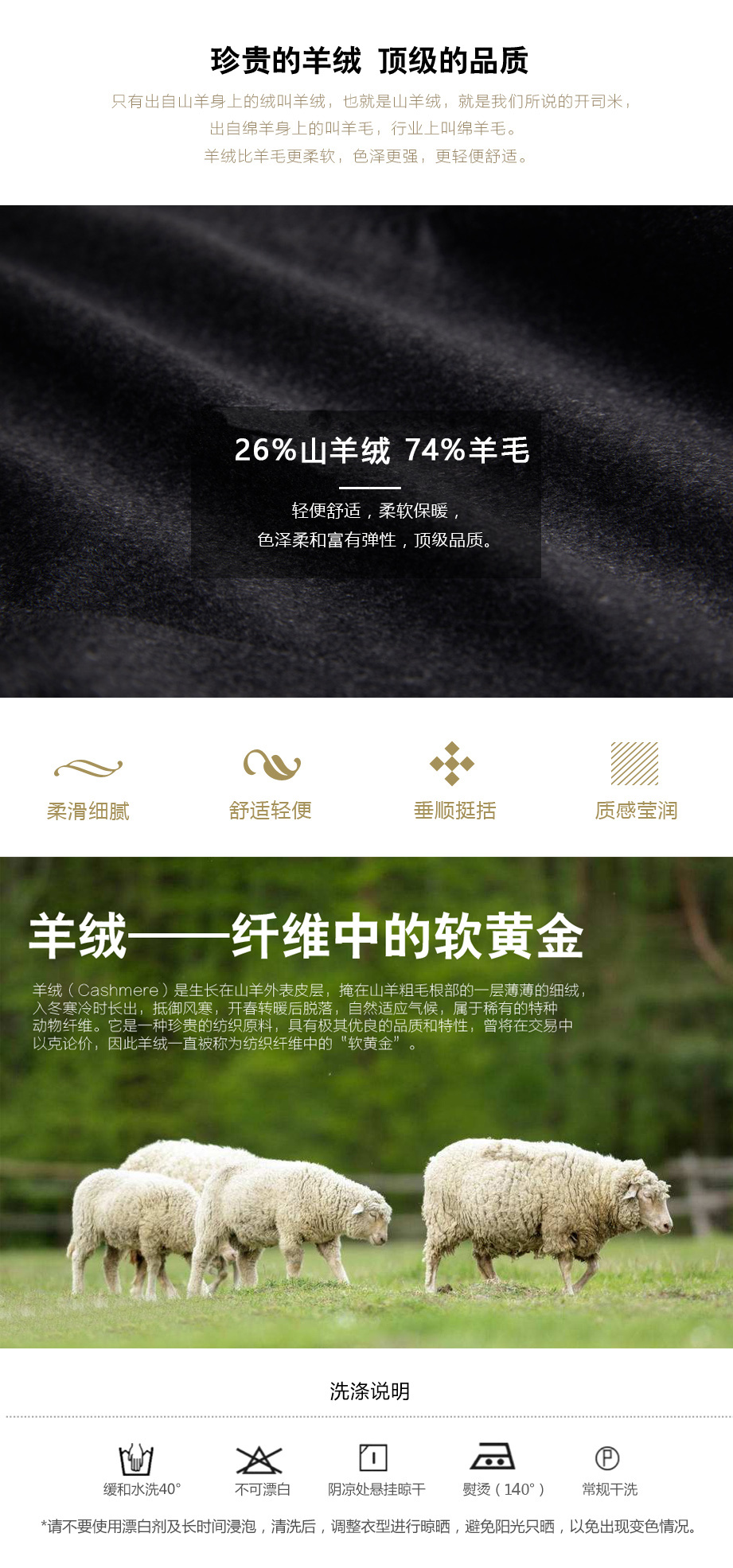 | 面料: | 26%羊绒74%绵羊毛 | |||