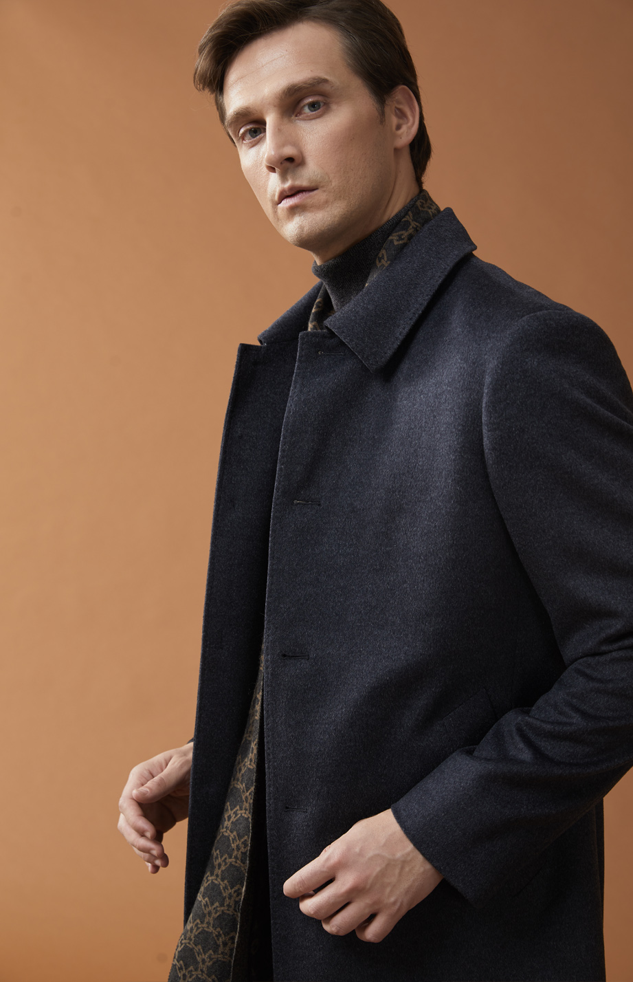 | 款名: | 碳灰色羊绒混纺(49%绒)翻领经典款大衣 | |||