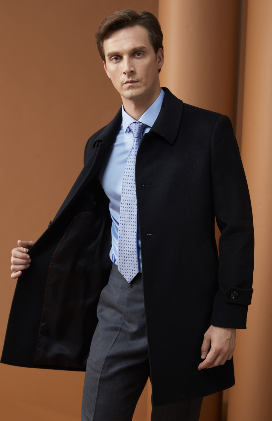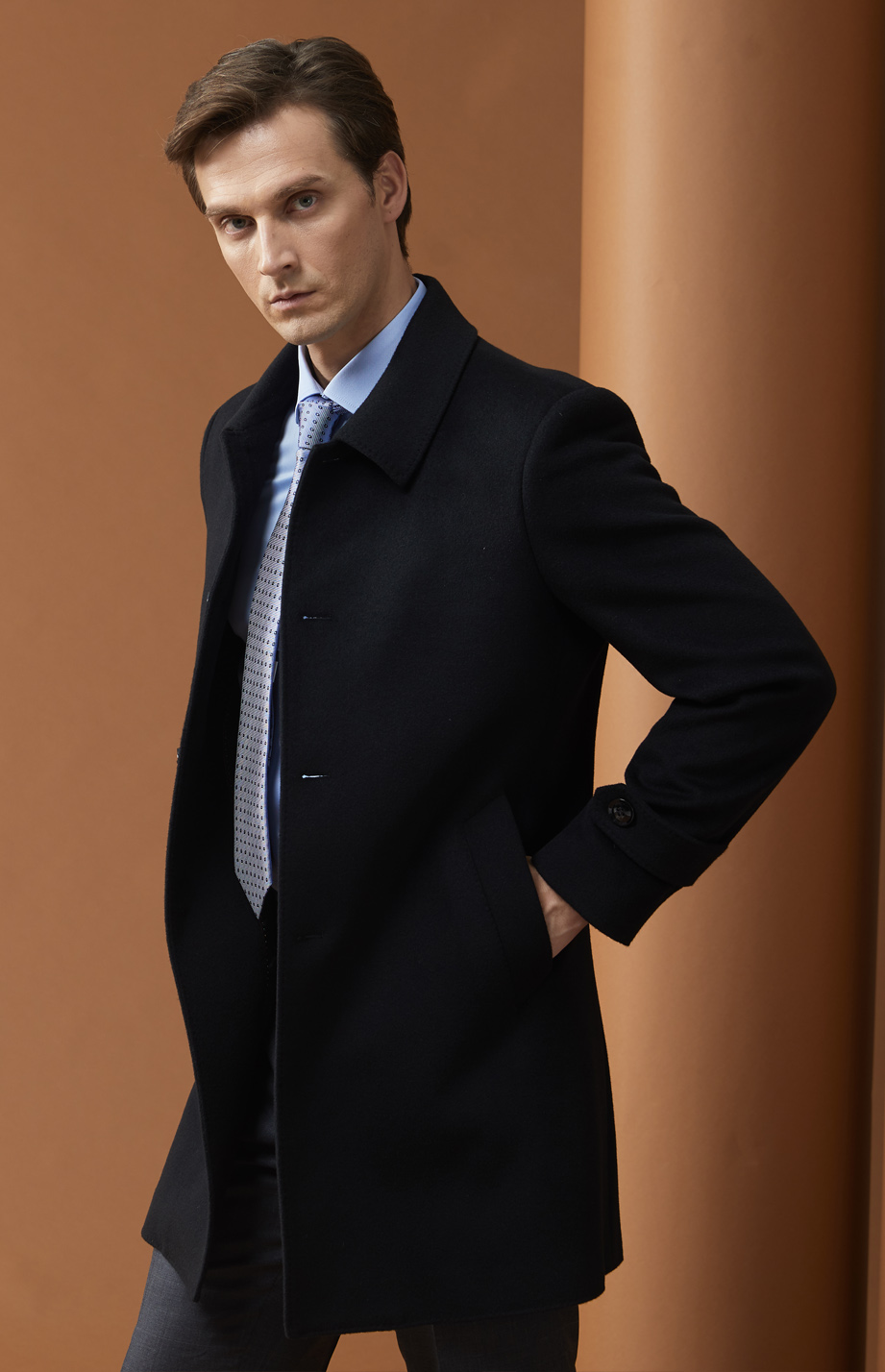 | 款名: | 黑色纯羊毛(100%毛)中长款经典商务翻领大衣 | |||||