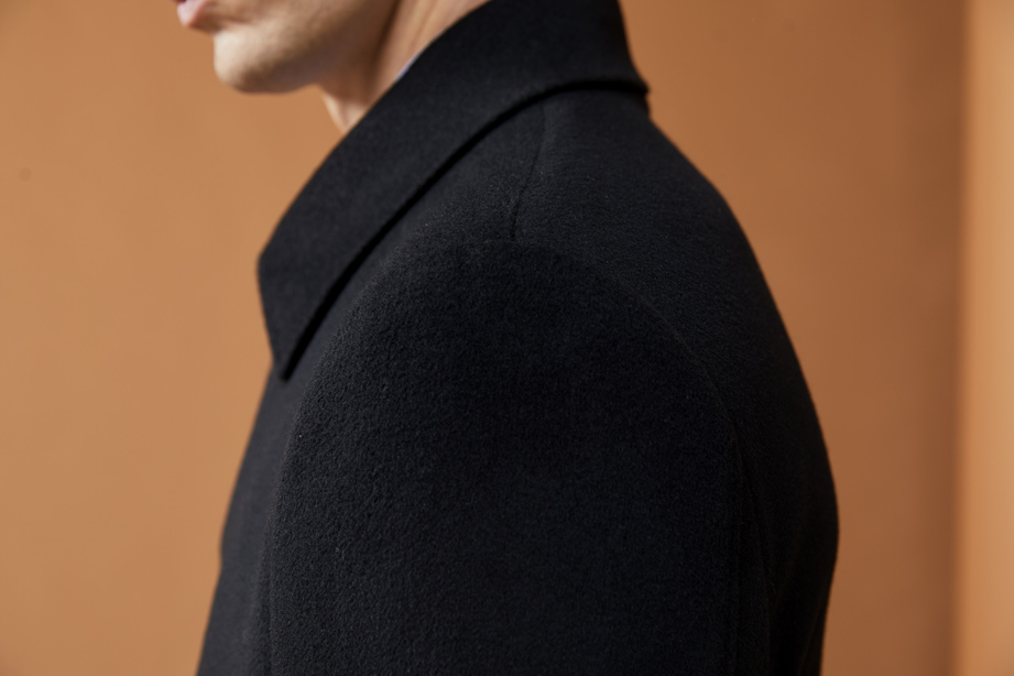 | 款名: | 黑色纯羊毛(100%毛)中长款经典商务翻领大衣 | |||