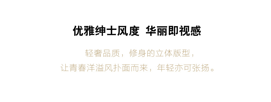 平整精细后双开线口袋,一次开机形成上下唇精美纹和,简约大气。