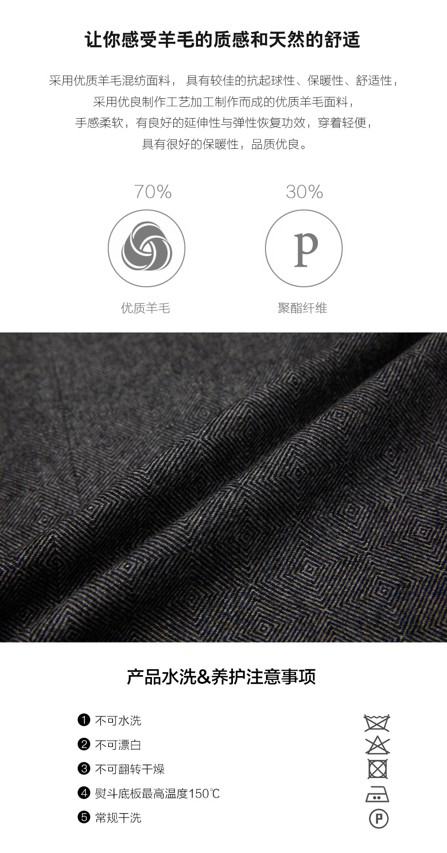 | 款名: | 深灰色复古回纹毛涤单西 | |||||