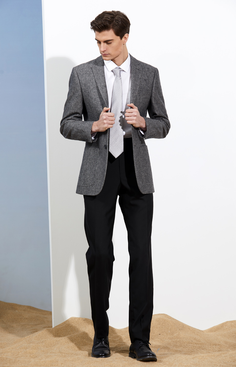 简约平驳领设计,衣襟自然贴体,前胸立体挺括。